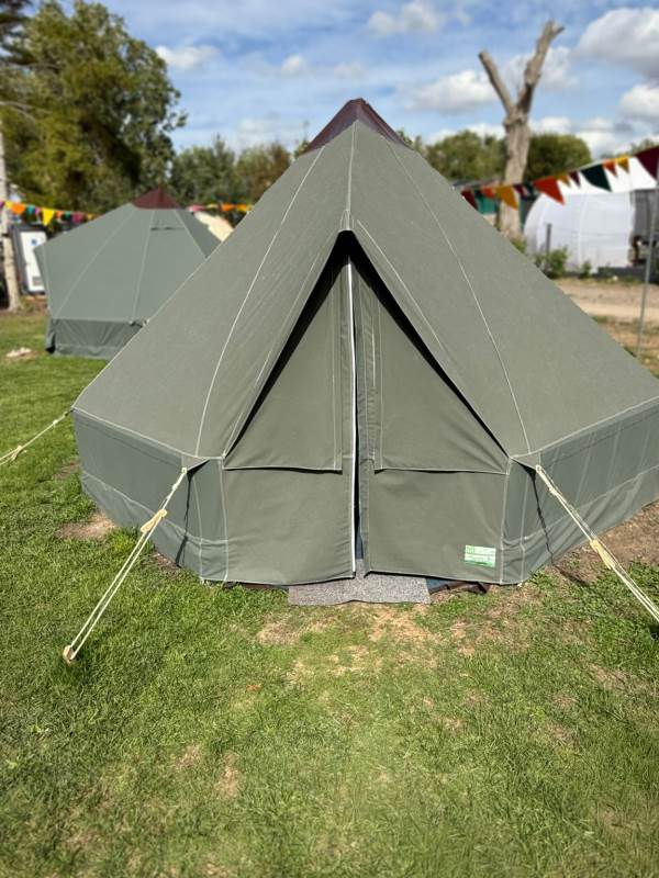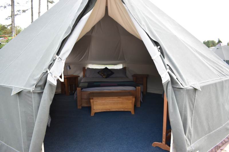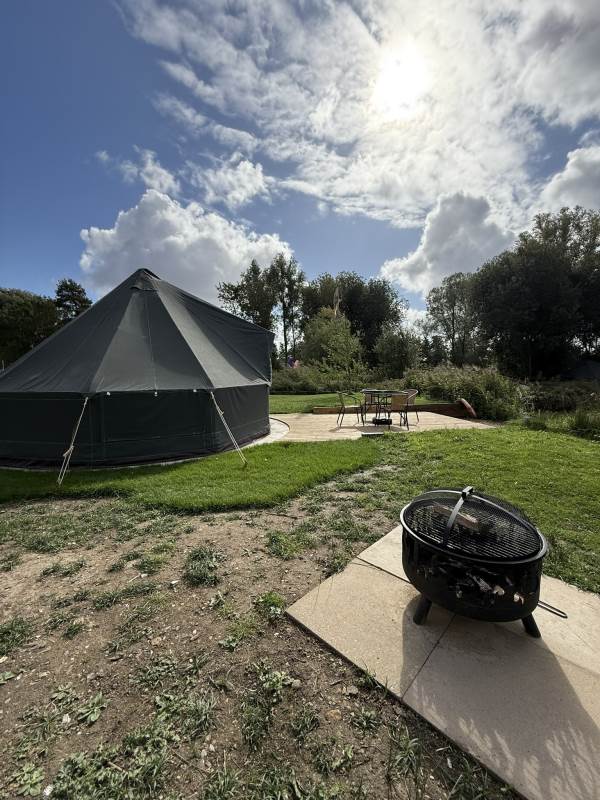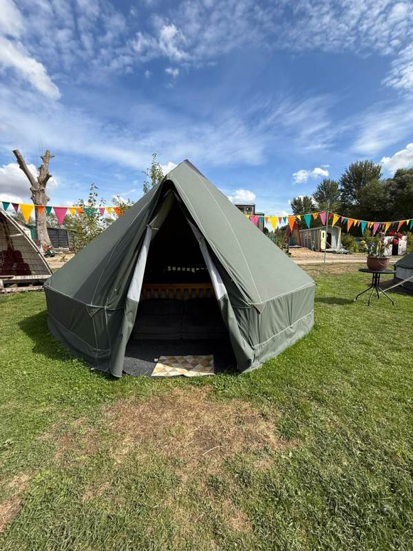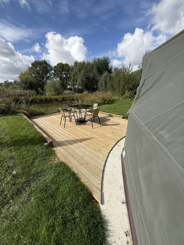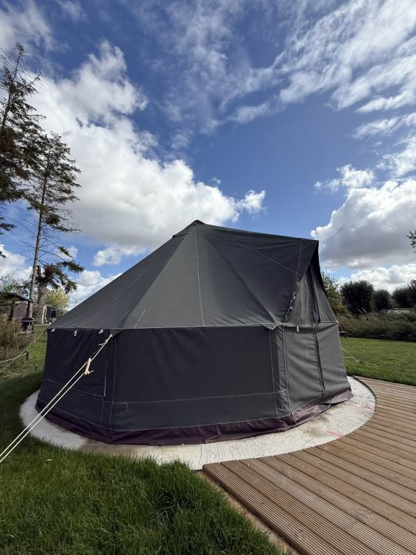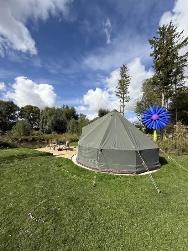 5m Spacious, pole-free nomadic bell tent with lakeside views. *Bookings of 6 people or more, please call us directly*