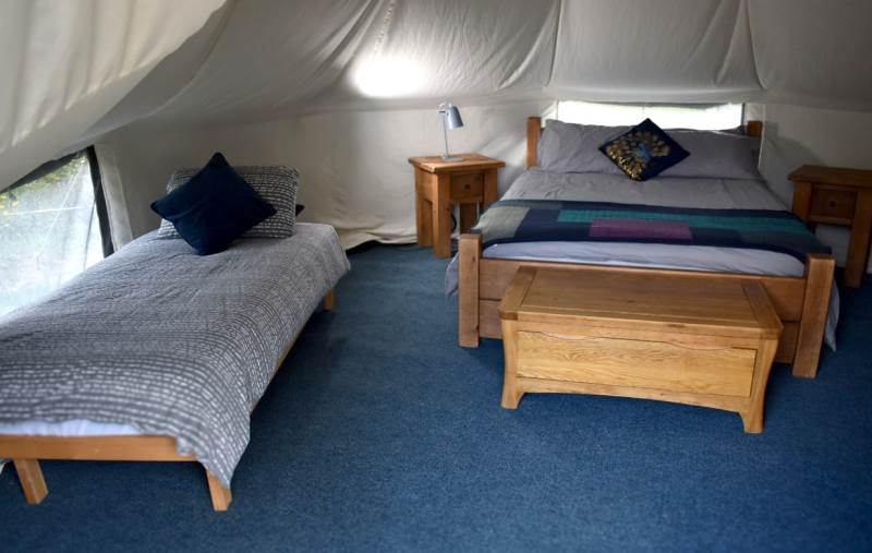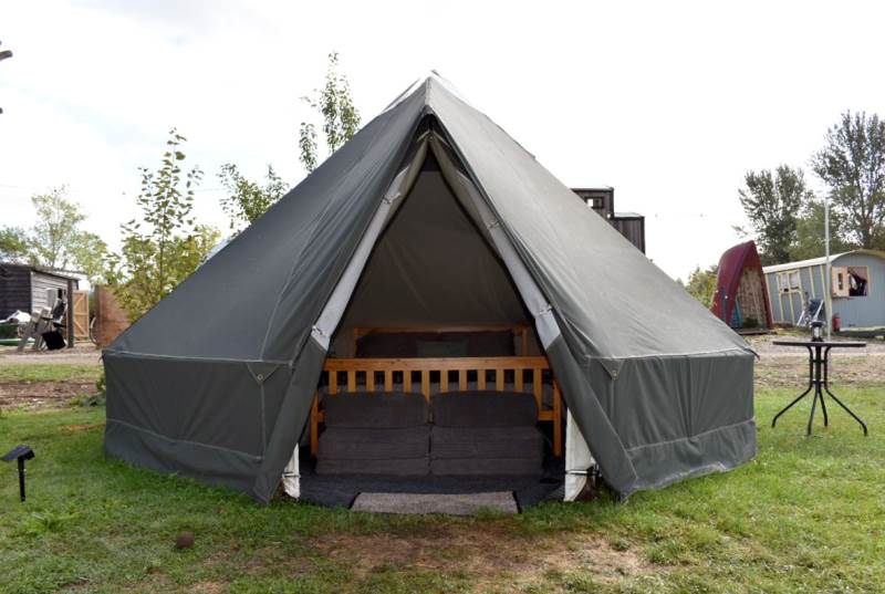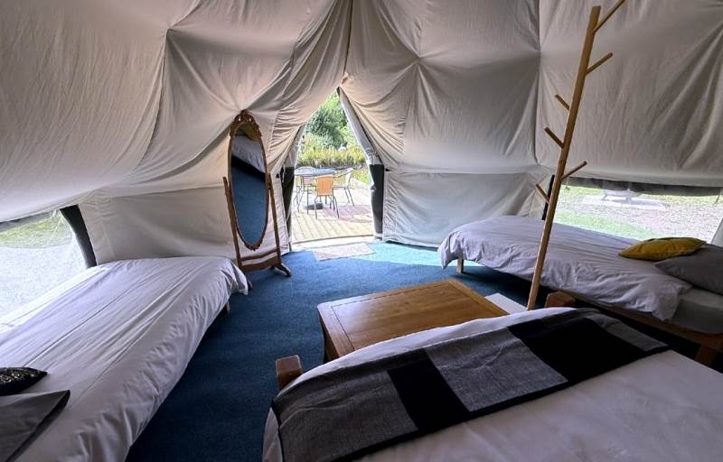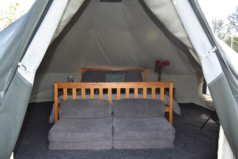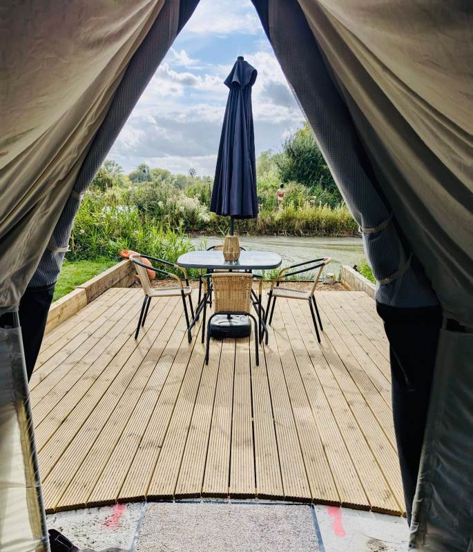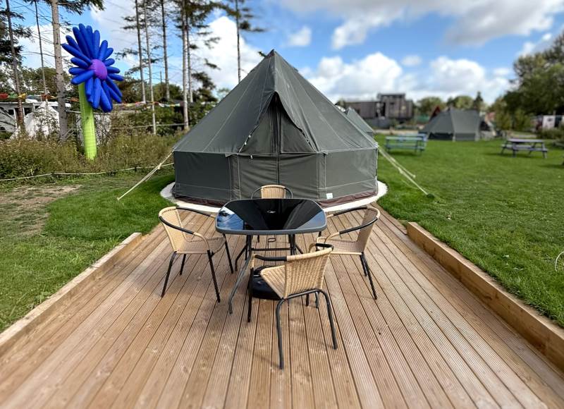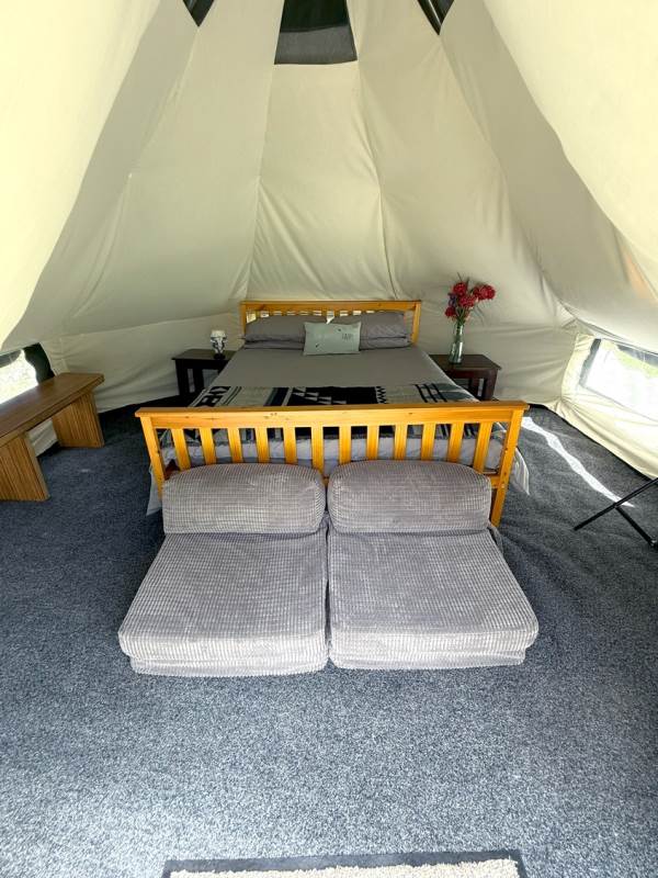 5m Spacious, pole-free nomadic bell tent with lakeside views. *Bookings of 6 people or more, please call us directly*