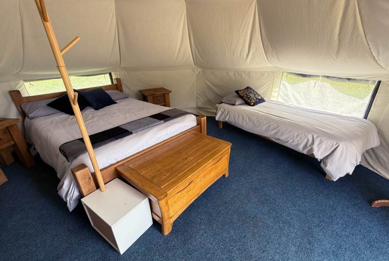 Beside The Top fishing pond, this cosy, rustic glamping retreat is designed for those who crave simplicity, comfort, and a slower pace of life.