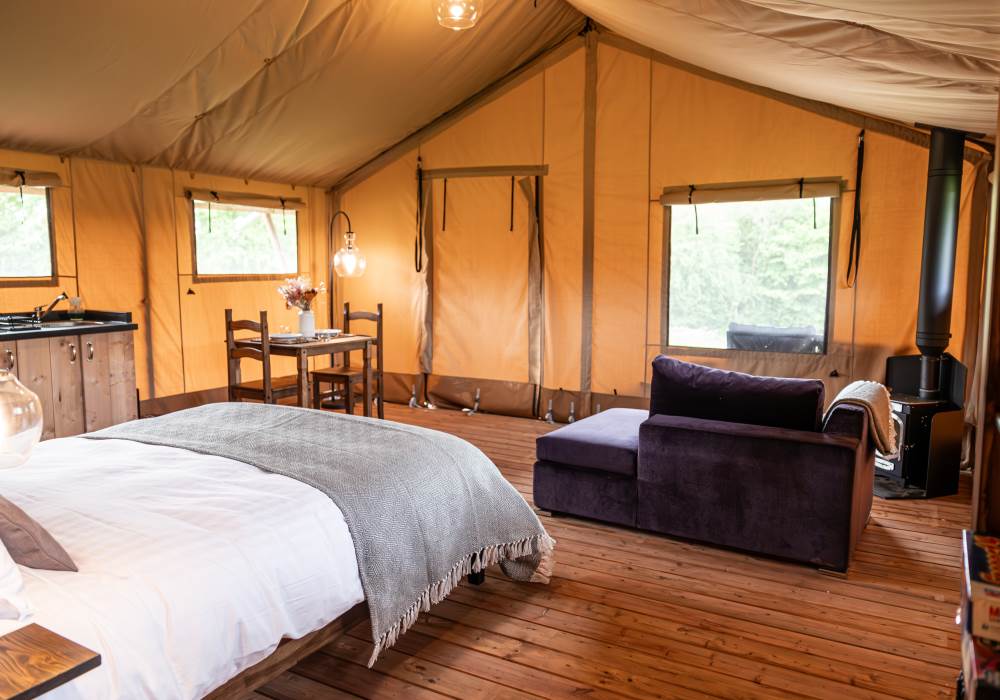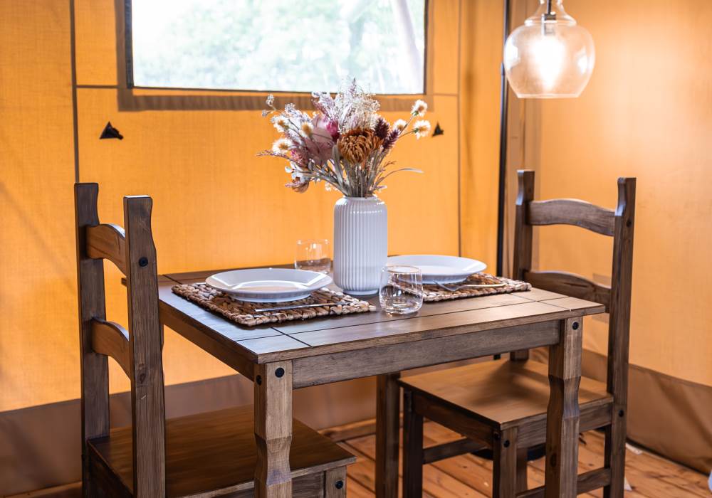 Our one-bedroom canvas lodges offer the perfect blend of luxury and nature, making them the ideal getaway for couples, solo travellers, or friends looking to relax and unwind a little closer to nature.
