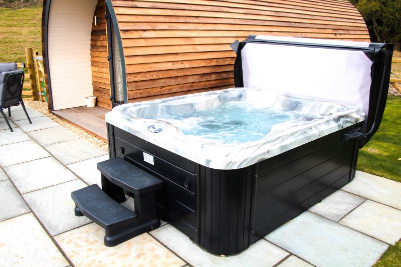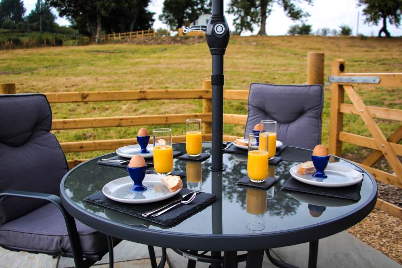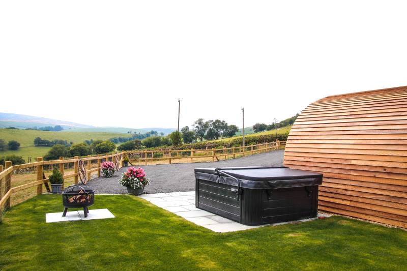 Outside this property is even more impressive! With its own luxurious hot tub, soak away your stay with a glass of bubbly whilst admiring the fantastic rural views of Mid Wales. You will also find outdoor seating, perfect for alfresco dining on a warm, sunny evening or make use of the fire pit by toasting marshmallows under a twinkly night sky.