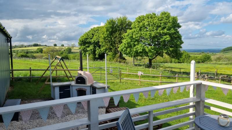 Outside you will have your own private decking area, outside dining furniture, a bbq, and fire pit, and of course your own private hot tub! All over looking fields and hills.