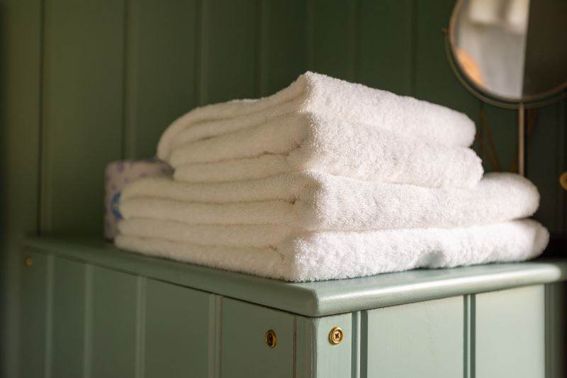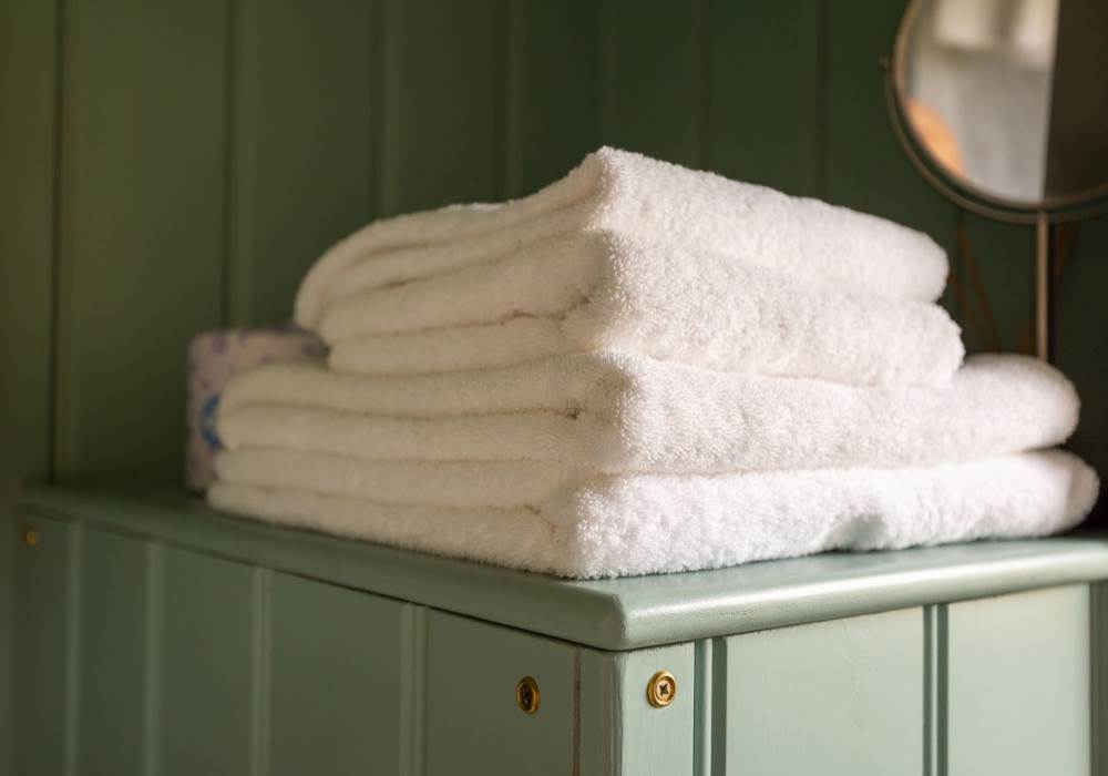 Organic cotton bath & hand towels. Summerdown shower gel, hand soap & body lotion. Essentials box of extra items if needed.