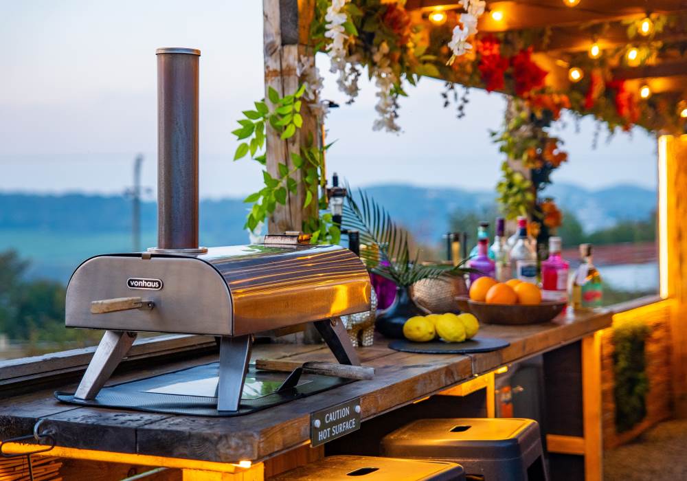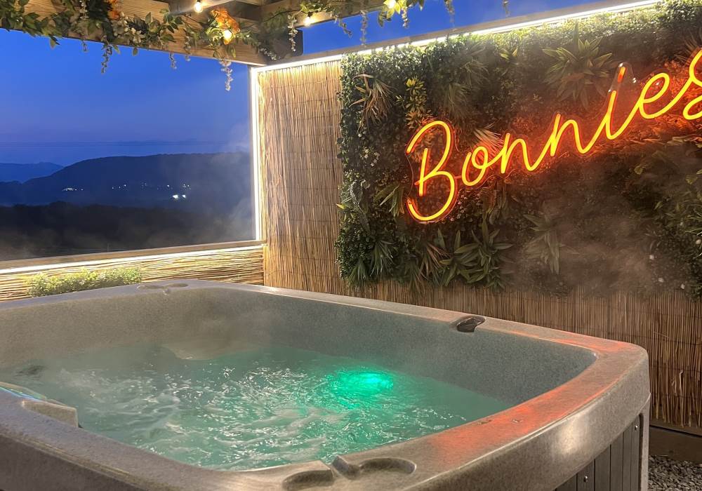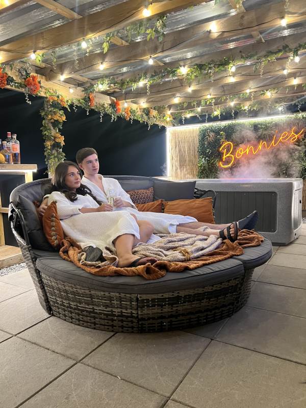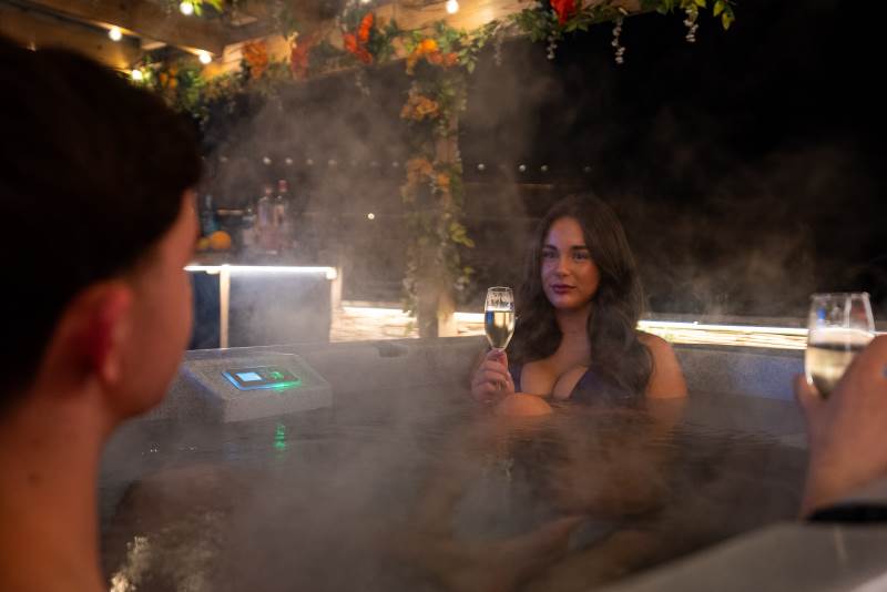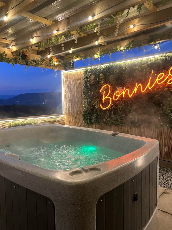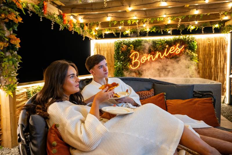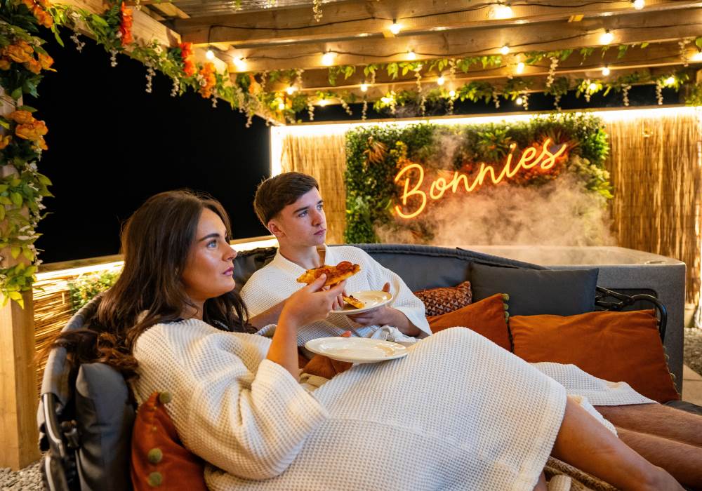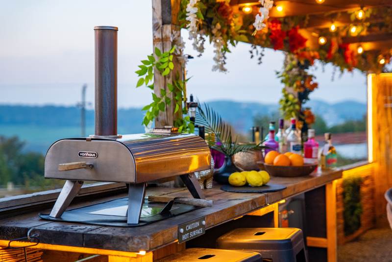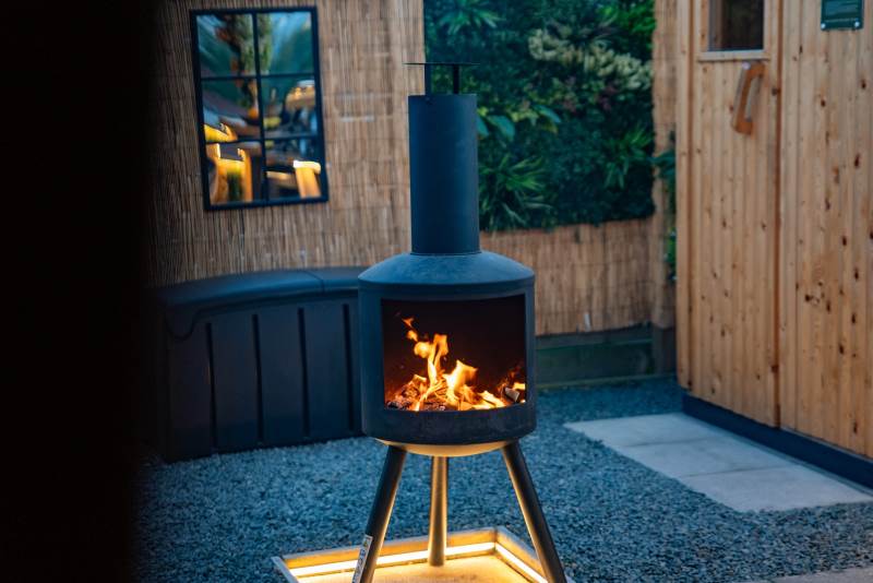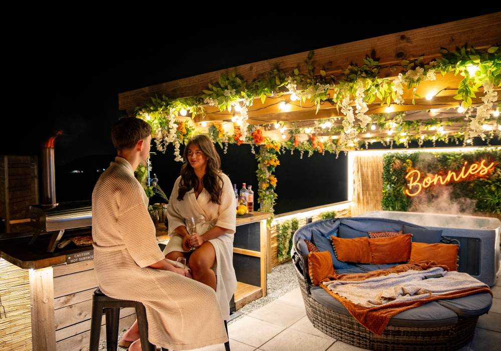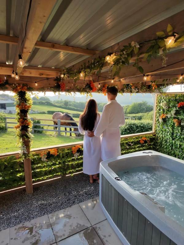 Our Super VIP Pod offers the ultimate getaway, featuring a private hot tub with stunning views and amazing vibe lighting. Enjoy your favorite films on the 50" outdoor SMART TV, keep drinks chilled in the outdoor fridge, and relax on the large outdoor sofa with fluffy blankets. The fire pit and pizza oven add a touch of luxury to your outdoor experience. For the ultimate relaxation, indulge in the outdoor infrared sauna, completing your stay at Tan Y Bryn Glamping.