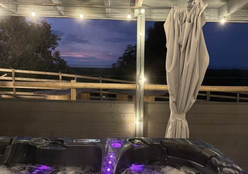 Private Outdoor Hot Tub: End your day with a relaxing soak under the evening sky in your own exclusive hot tub (viewable right outside the main bedroom).