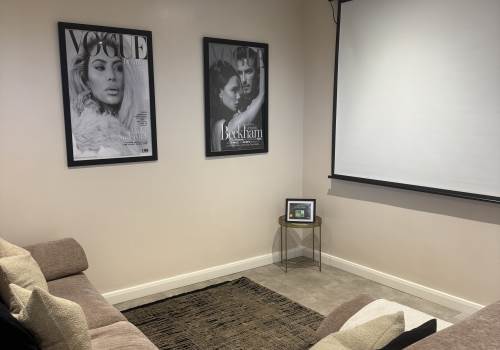 Living & Entertainment: The lounge area is cozy and features a smart TV for relaxing evenings, along with elegant furnishings.