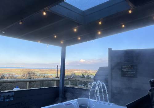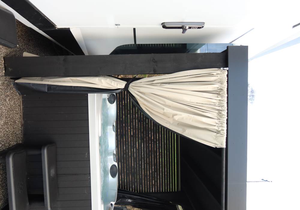 While situated on the lower ground, the elevated position of the overall property still ensures that Jupiter has excellent, unimpeded views across the surrounding countryside toward the horizon. The location provides easy access to your hot tub and the large outdoor garden space.