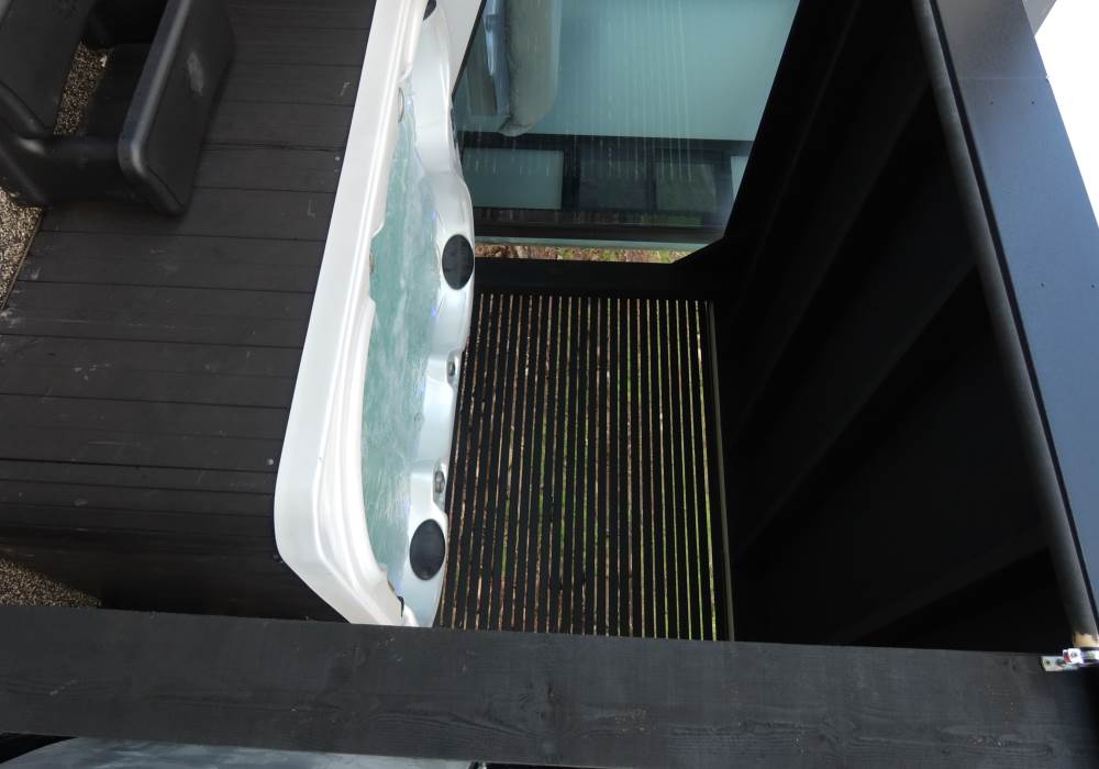 Guests have exclusive use of the Jupiter pod, the private hot tub, and the expansive adjacent resin area.