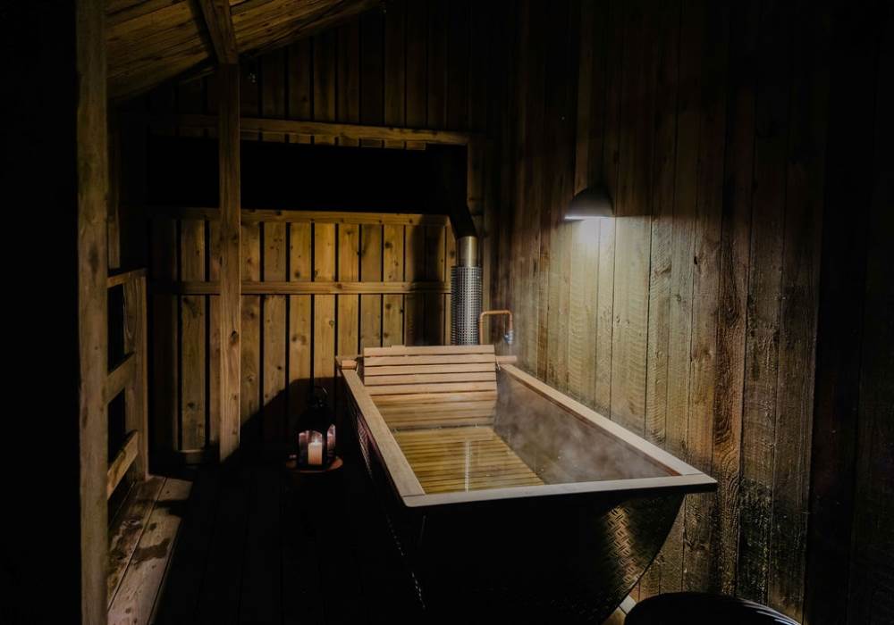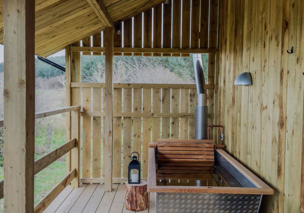 The cabin has an electricity supply and is heated with central heating. Logs and kindling will be provided for the wood-burner, firepit and outdoor bath. Additional supplies can be purchased during your stay if required.