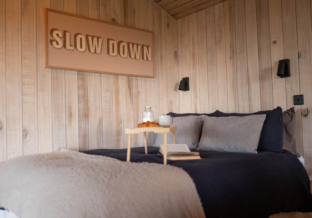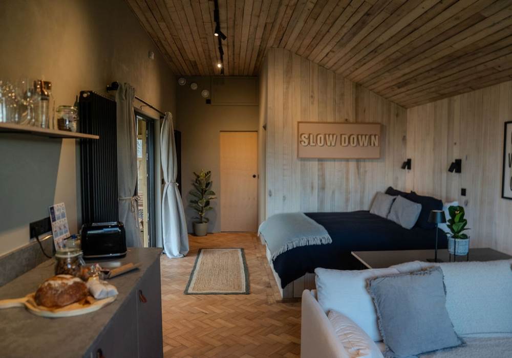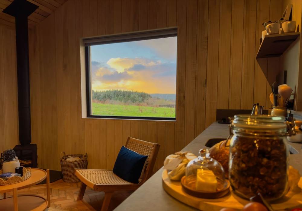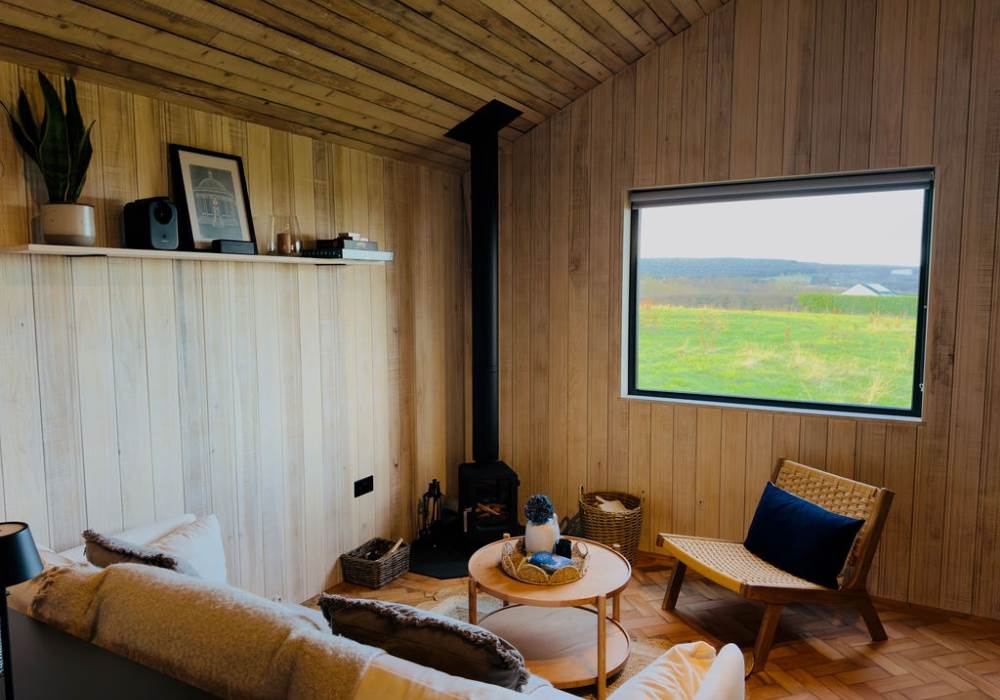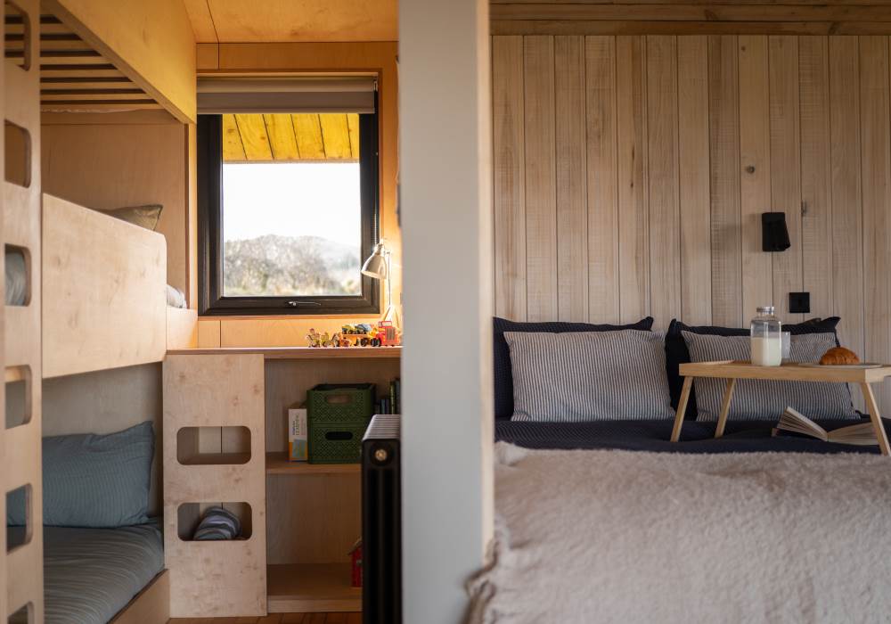 The open plan cabin design ensures you can continuously enjoy breath taking coastal views as the living, sleeping and kitchen area are all-in-one. This peaceful area has everything you need: a comfy sofa to curl up on with a good book, WiFi and a projector for film nights, a selection of books and games and cosy wood-burner stocked with logs, kindling, firelighters and matches.