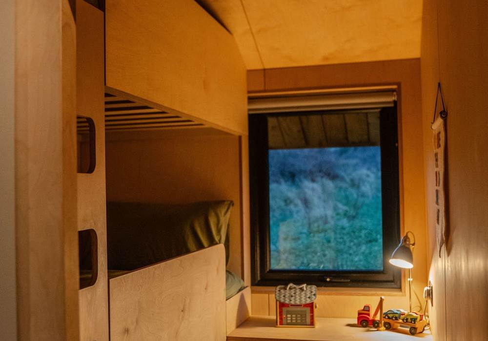 Thoughtfully designed for both relaxing getaways and family adventures, the bespoke bunk room comfortably sleeps up to three children, making it ideal for romantic stays or trips with little ones. Start your day with glowing sunrises and unwind with spectacular sunsets from the covered veranda, all while enjoying the peaceful beauty of the surrounding landscape in luxurious comfort.