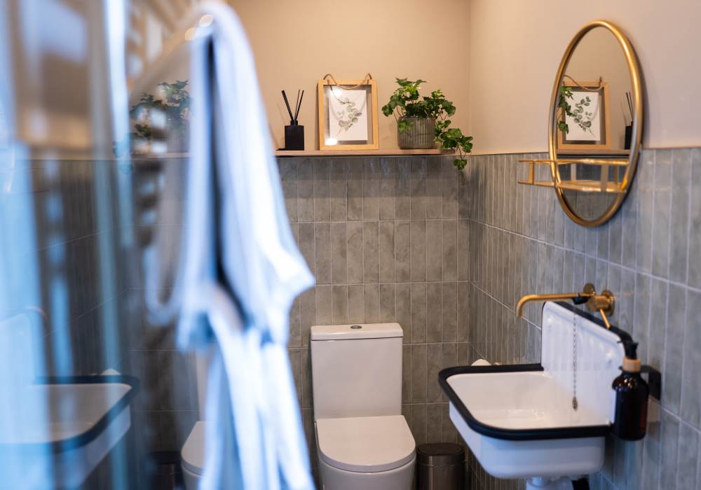 Enjoy a refreshing walk-in rainfall shower in the ensuite shower room fitted with sink and W/C. Toiletries and towels are provided.