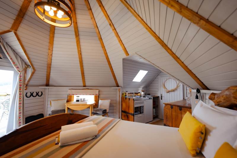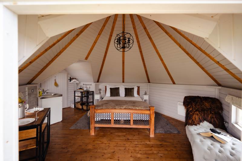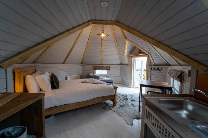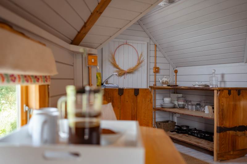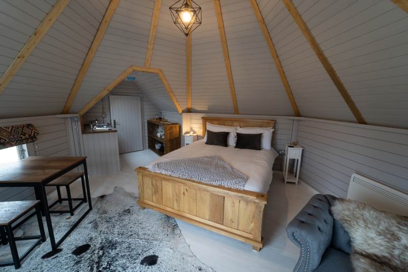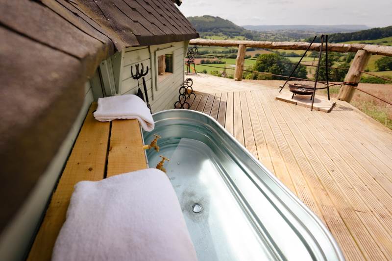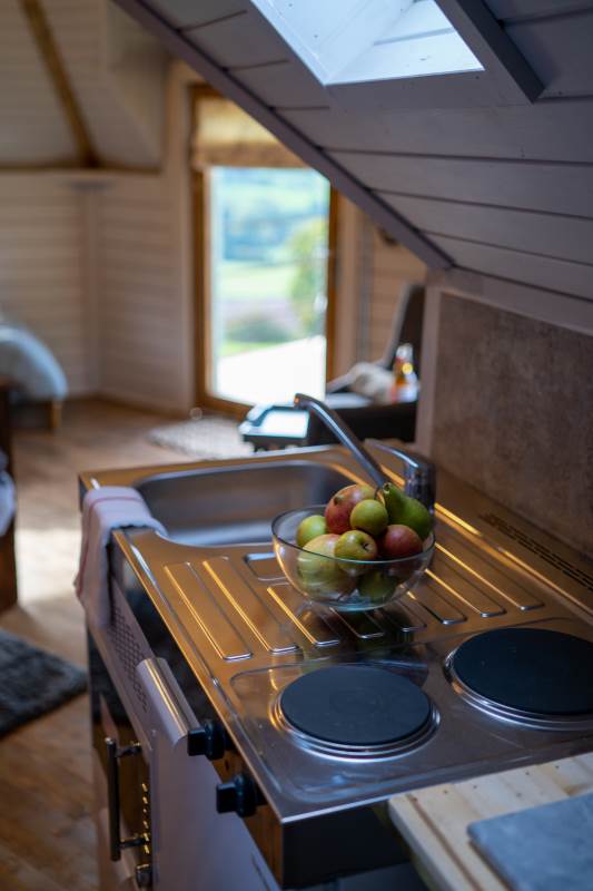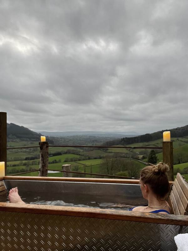Such a lovely stay here. The views were spectacular, and the cabin is pointed towards sunset, meaning every evening there's a reason to be outside on the balcony before getting cosy indoors.The Bathroom, whilst tiny, is beautifully done, and the kitchen has enough bits and pieces to make basic food - it would have been LOVELY to have a bottle of milk in the fridge when we arrived as the nearby shops are a drive away, and some fresh farm milk would have been perfect. Otherwise, great. Warm bed, comfy chaise (could you squeeze another one in so guests aren't fighting over it?) and the hammock is dreamy.We walked up Garway hill which looks MILES away but is actually pretty achievable if you don't mind a steepish climb at the end - worth it for the views from the top.We also drove 45 mins to Llangattock Escarpment, which is a stunning walk / location. Very much recommend it if you fancy a bit of real-life Middle Earth.