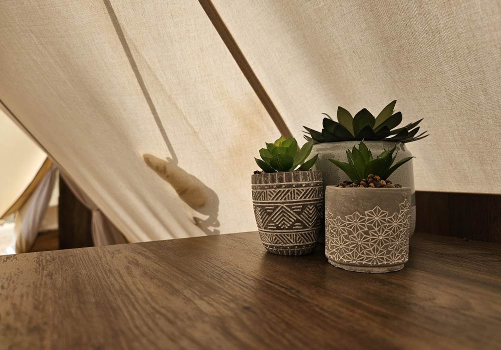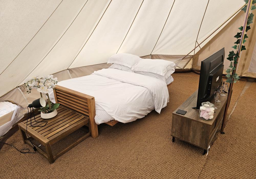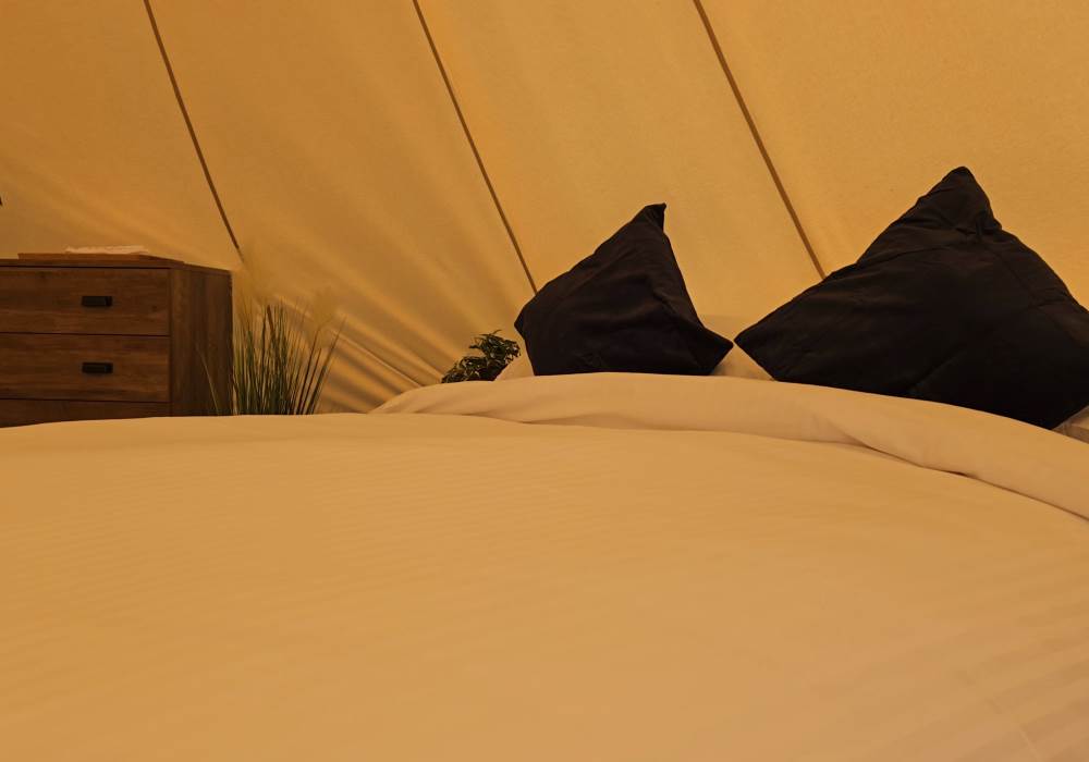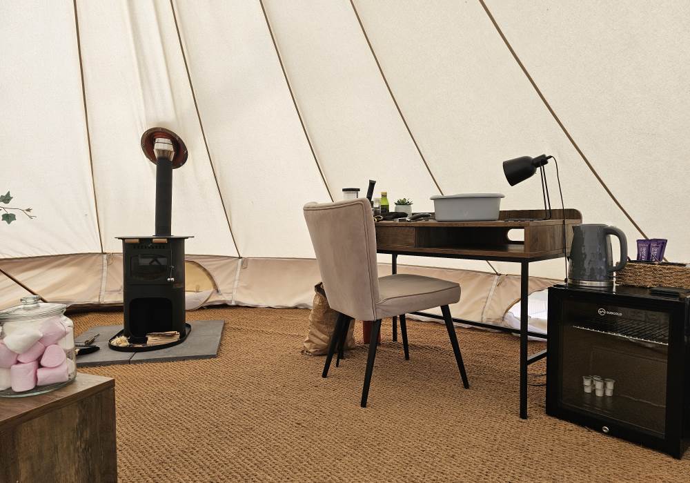 Sole access to the bell tent and private bathroom. Shared access to the kitchen facilities. The field is privately owned but has a footpath running alongside it so you may see the occasional walker. This is a small glampsite with only four tents on site.