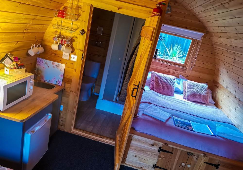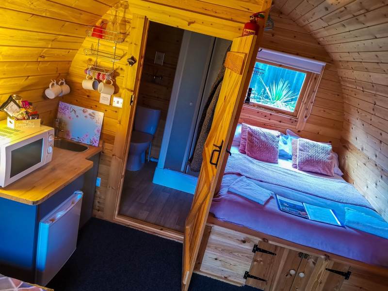 Auckland Pod sleeps 2 adults and is well equipped with en-suite bathroom, selection of toiletries, kitchenette with mini fridge kettle and microwave; sockets, heaters, bedding, towels and individual BBQ/firepit and seating area.