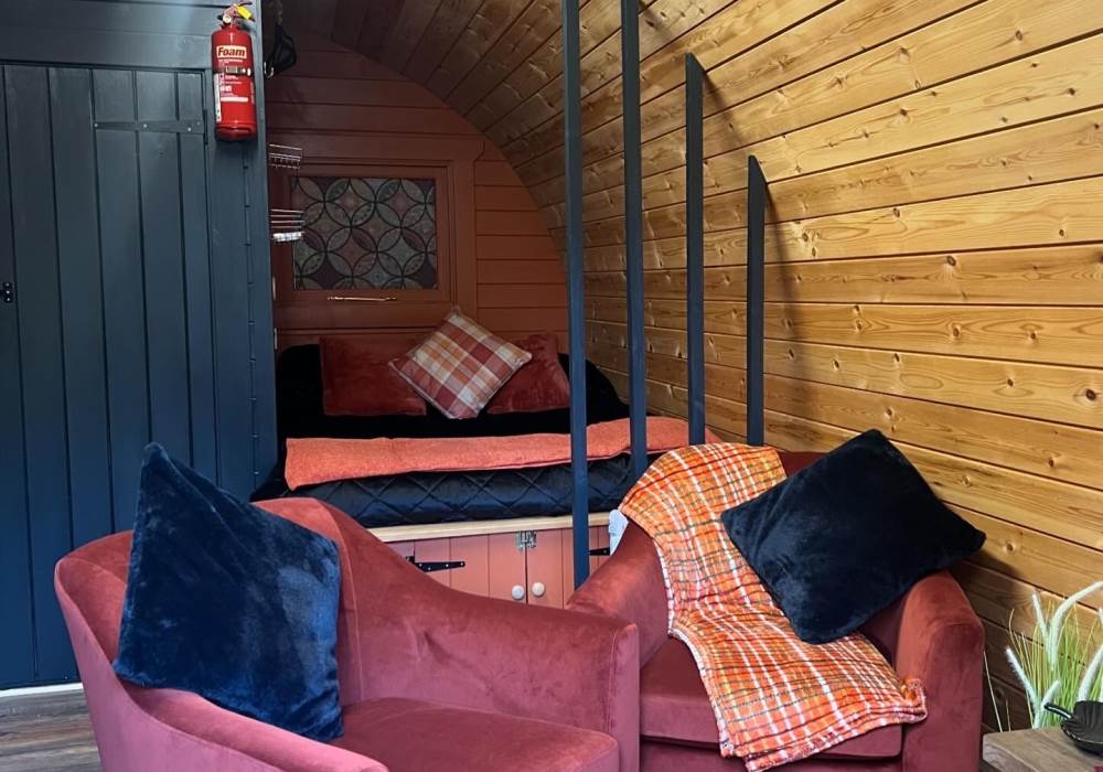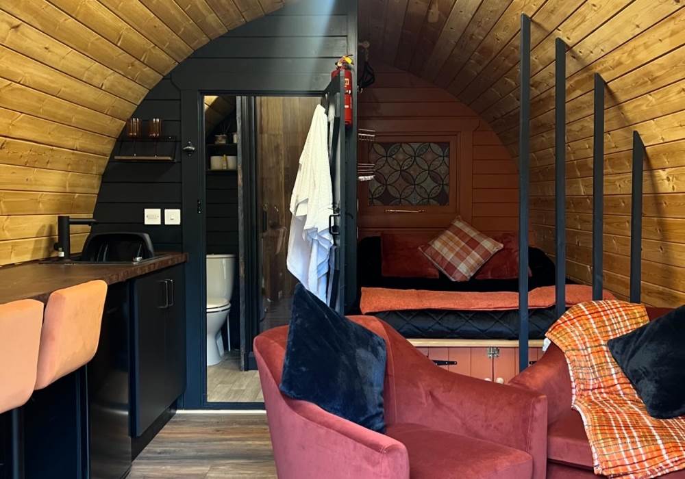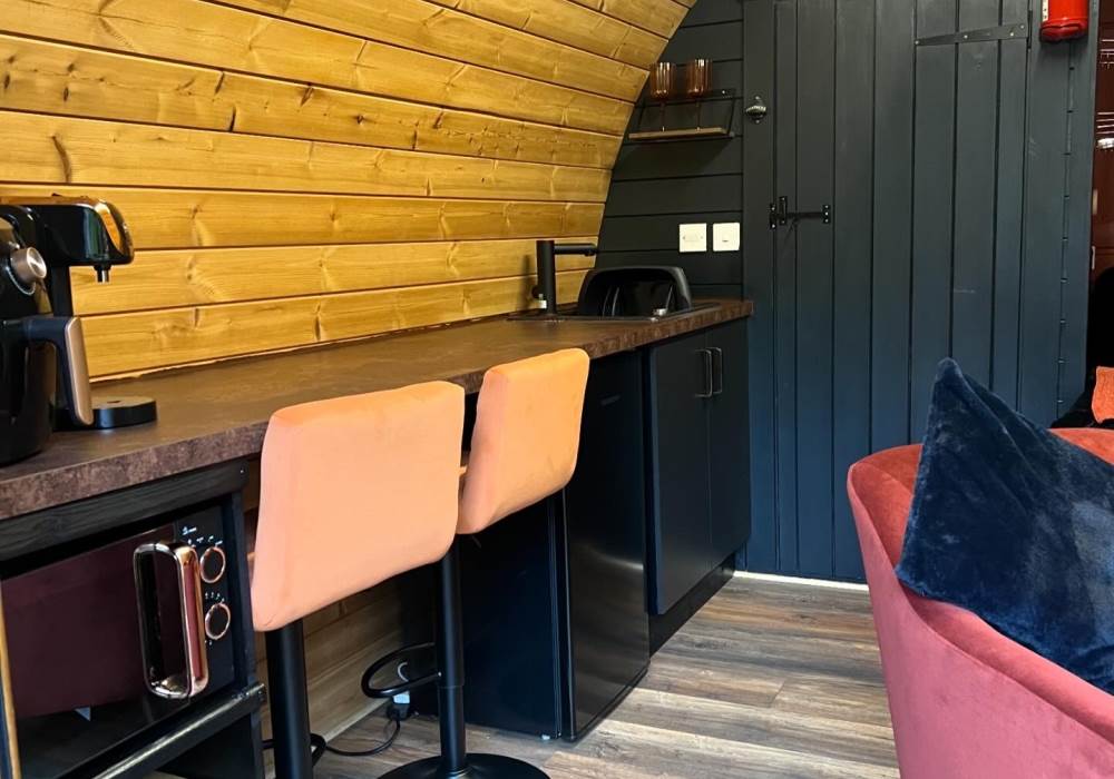 Raby Pod sleep 2 adults and is well equipped with en-suite bathroom, selection of toiletries, kitchenette with mini fridge kettle and microwave; sockets, heaters, bedding, towels and individual BBQ/firepit and seating area.
