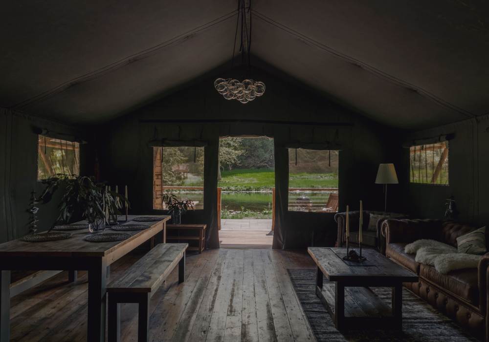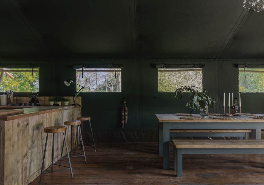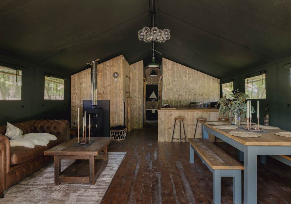 This tent is inspired by grandad’s own fisherman's hut. Here you can relax on the deck, in seating fashioned out of a rowing boat and savour the wildlife dancing atop the lake. You might even spot a fish, if the otters don’t get there first!