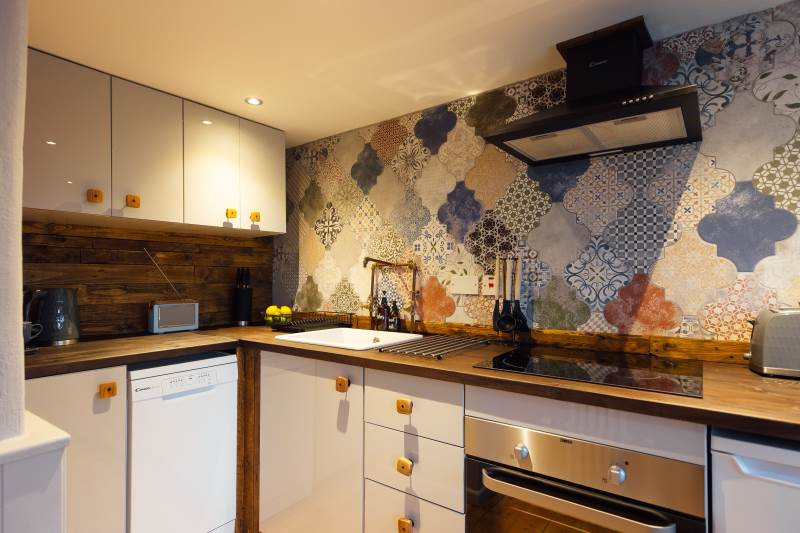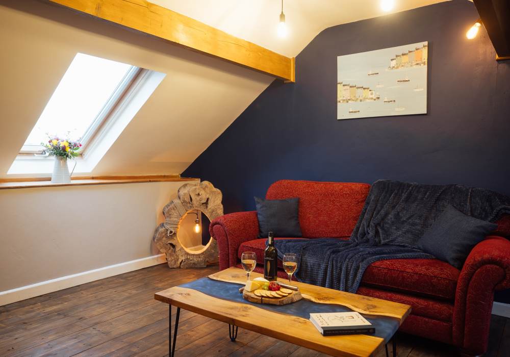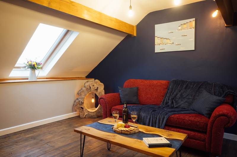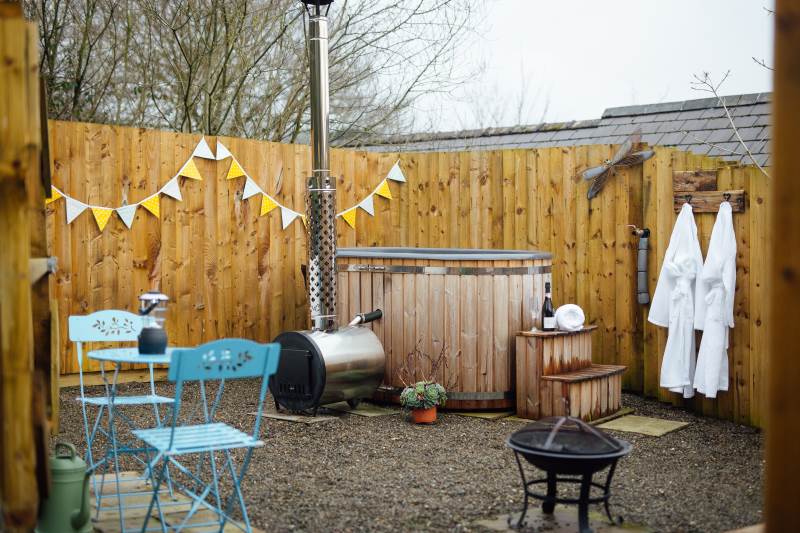 From the living area a door leads outside to a cosy and private, gravelled garden area complete with it's own wood fired hot tub. (Cottage is available to book without the hot tub at a discounted rate, please contact us BEFORE booking if you would like a discount code for this, it can not be applied once you have booked)