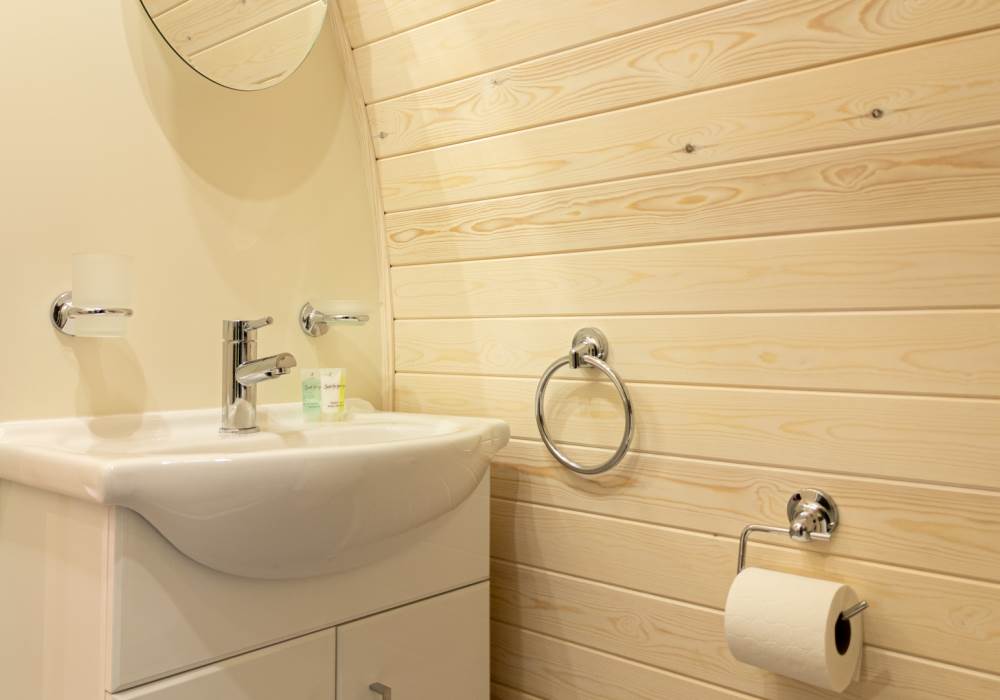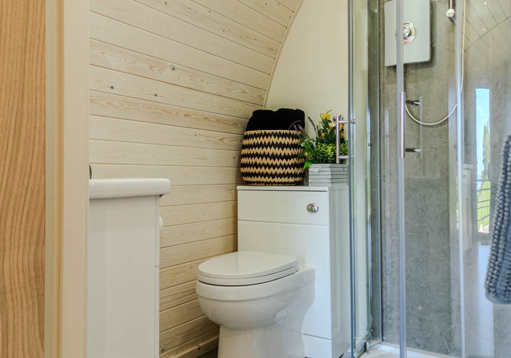 Bathroom, includes w.c, basin and shower. Towels are provided for inside pod use.