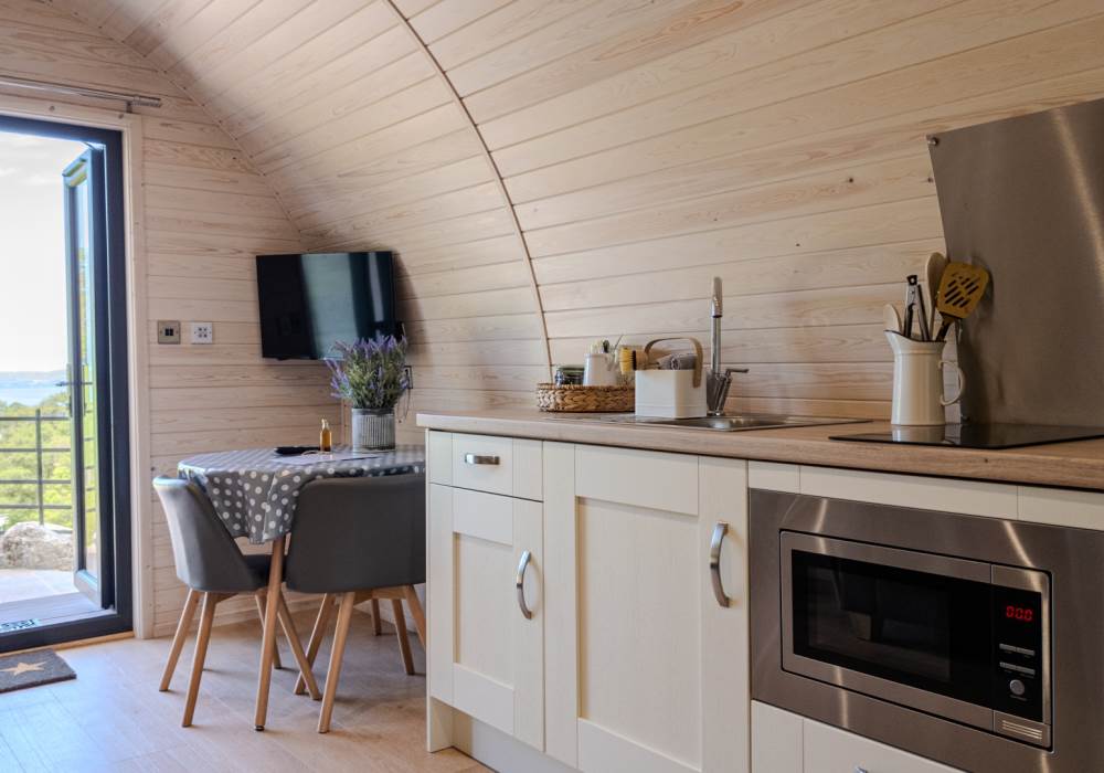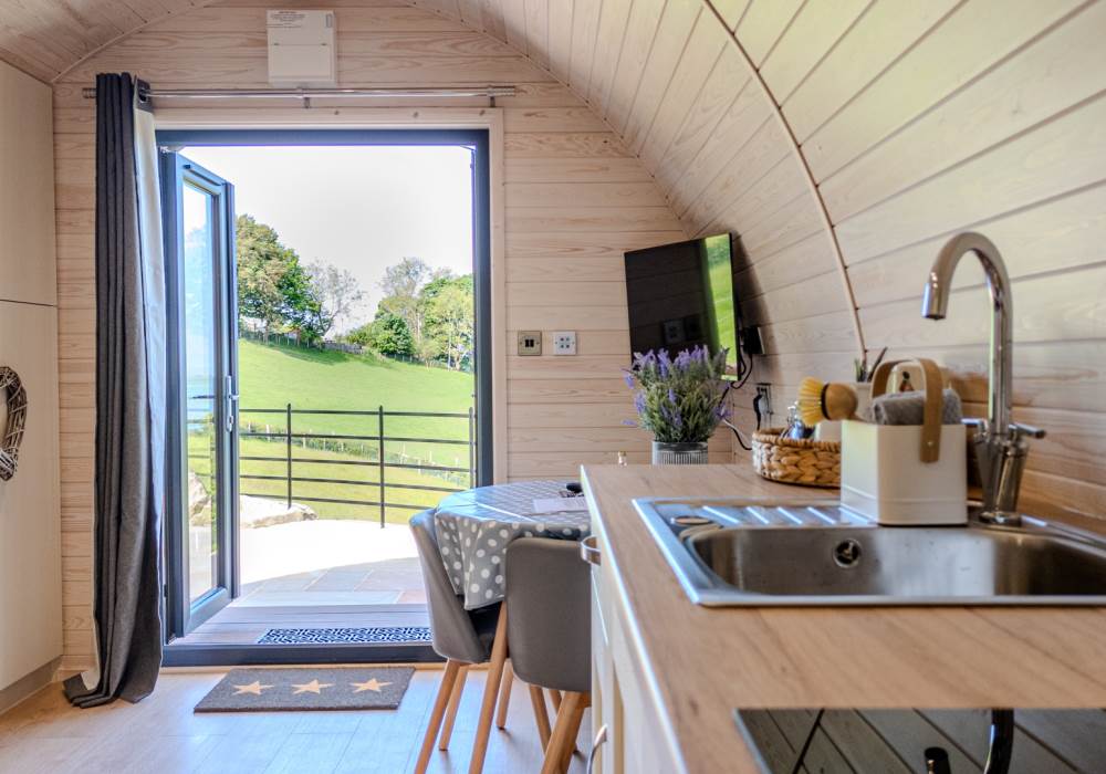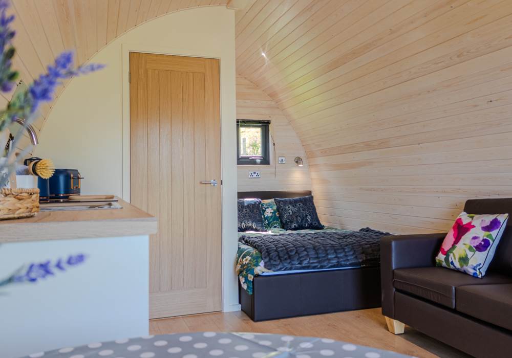 This is our new deluxe pod that sits high up on our site, giving it the most amazing, panoramic views of the Snowdonia mountains and the sea. The pod is spacious and has all luxury amenities.