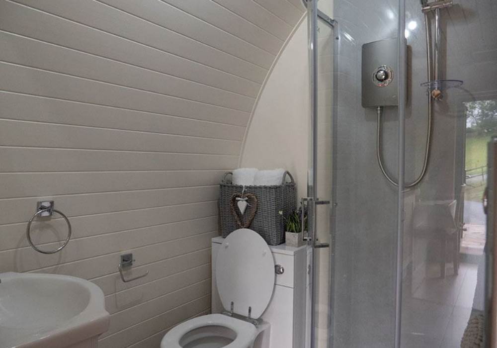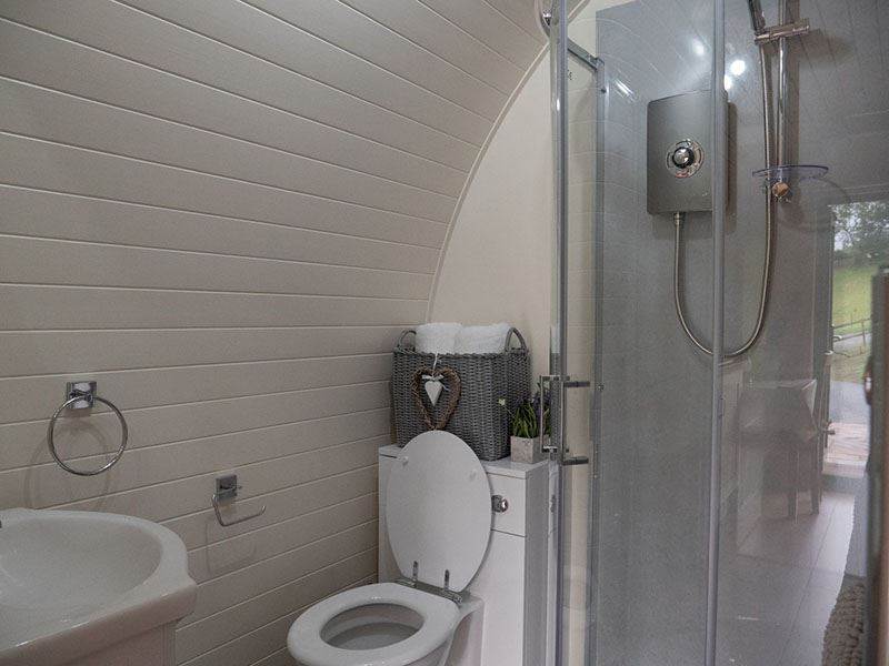 Bathroom, includes w.c, basin and shower. Towels are provided for inside pod use.