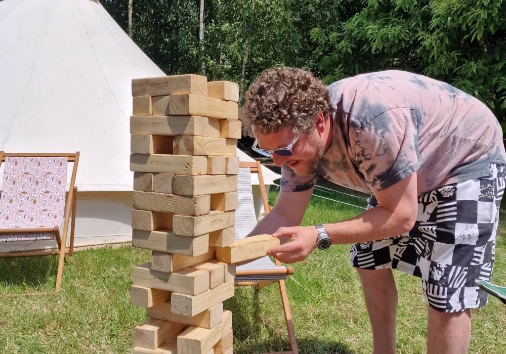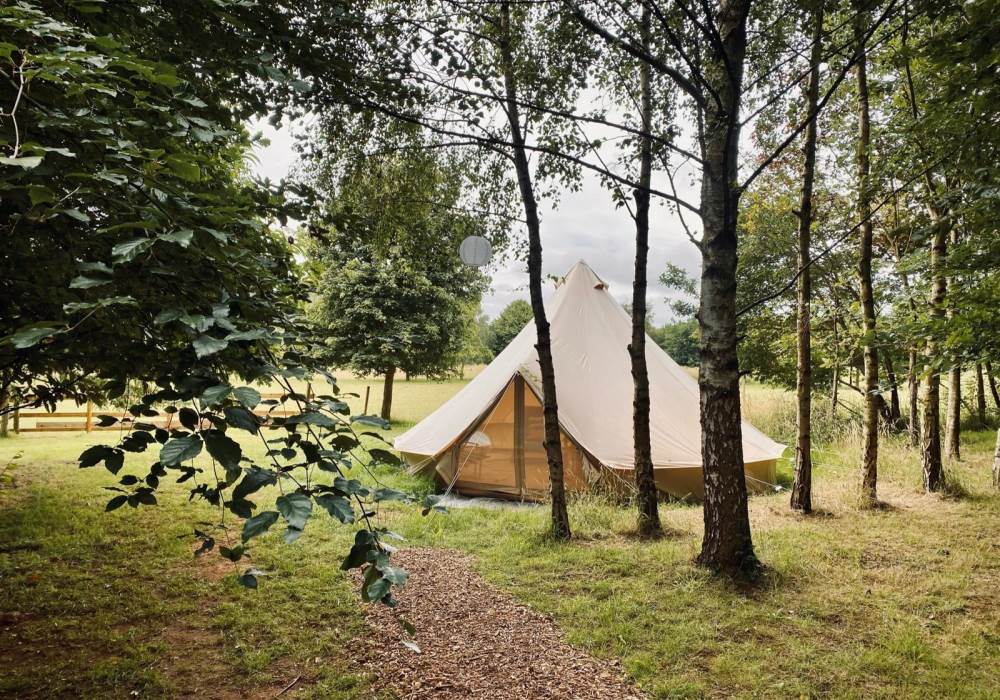 - Our guests have use of four bell tents, a covered outdoor kitchen and bar, covered banquet table, Scandi BBQ Hut, two firepits, a toilet block with two showers and a huge games field.