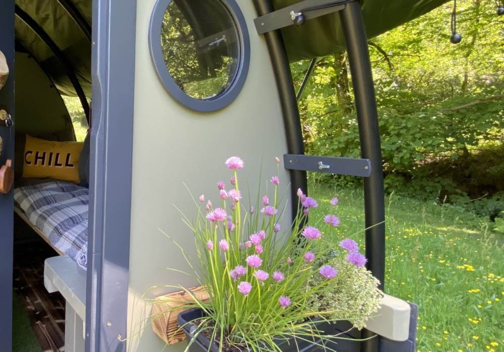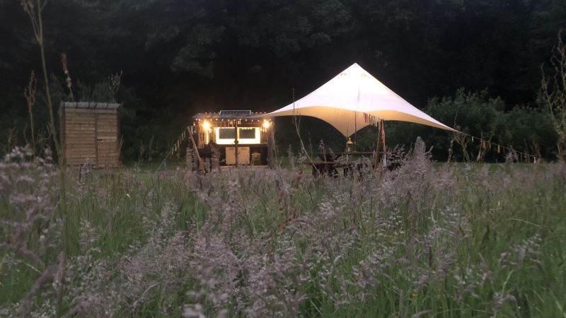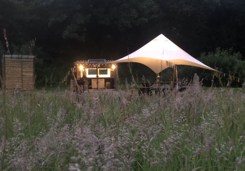 The only facilities shared with other WILDish guests is a converted shipping container in a neighbouring field with, mains power 2 flushing toilets, a washing machine, freezer for cool blocks, a hair dryer, drinking water and lending library.