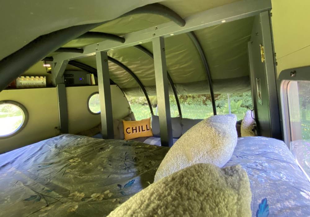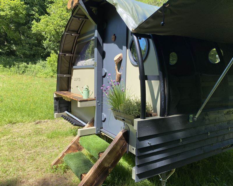 For sleeping there are 2 Landpods with 2 double beds in each. Each bed is prepared with a mattress protector and fitted sheet. You need only to bring your bedding towels, food and drink. Bedding packs of duvets, pillows, covers and towels are available to hire as an extra.