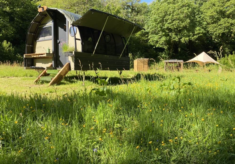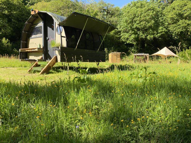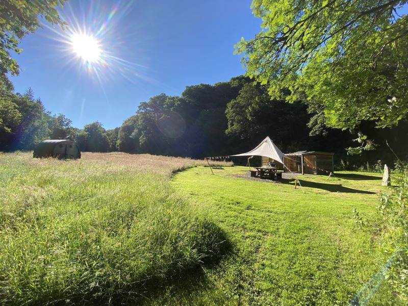 Located in an area of outstanding natural beauty and dark sky reserve. A peaceful and private sunny meadow for your exclusive, within 14 acres, on the edge of Bodmin moor and on the banks of the river Bedalder.