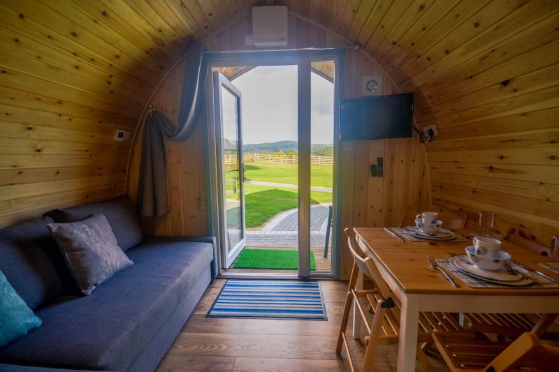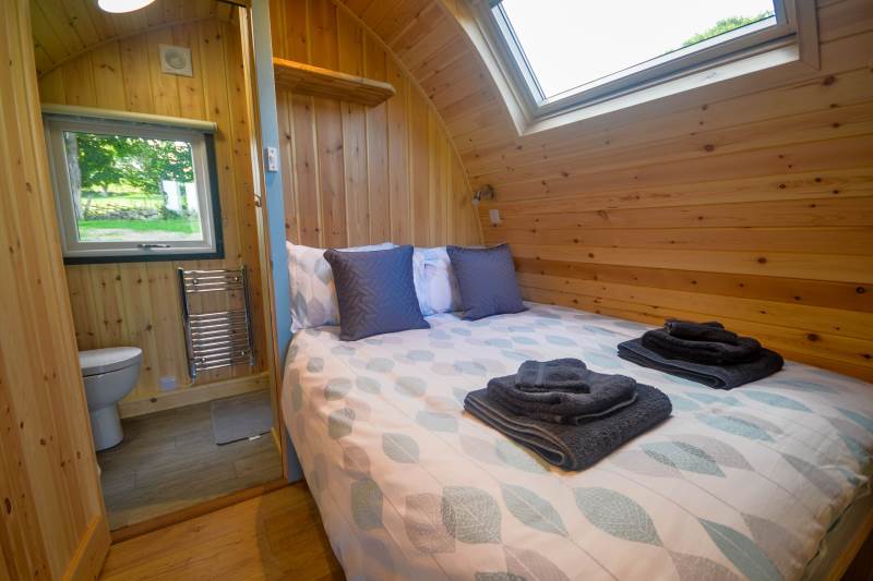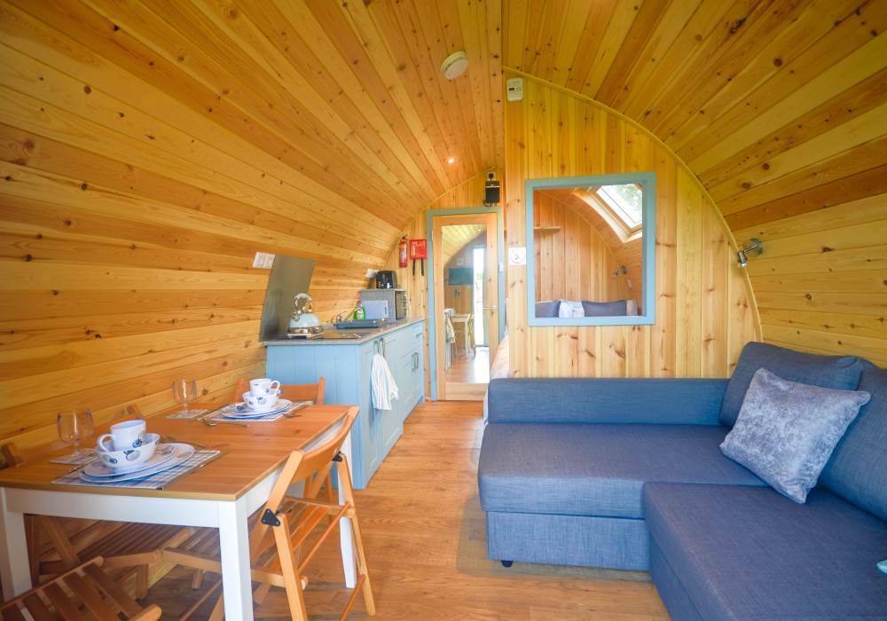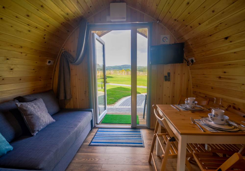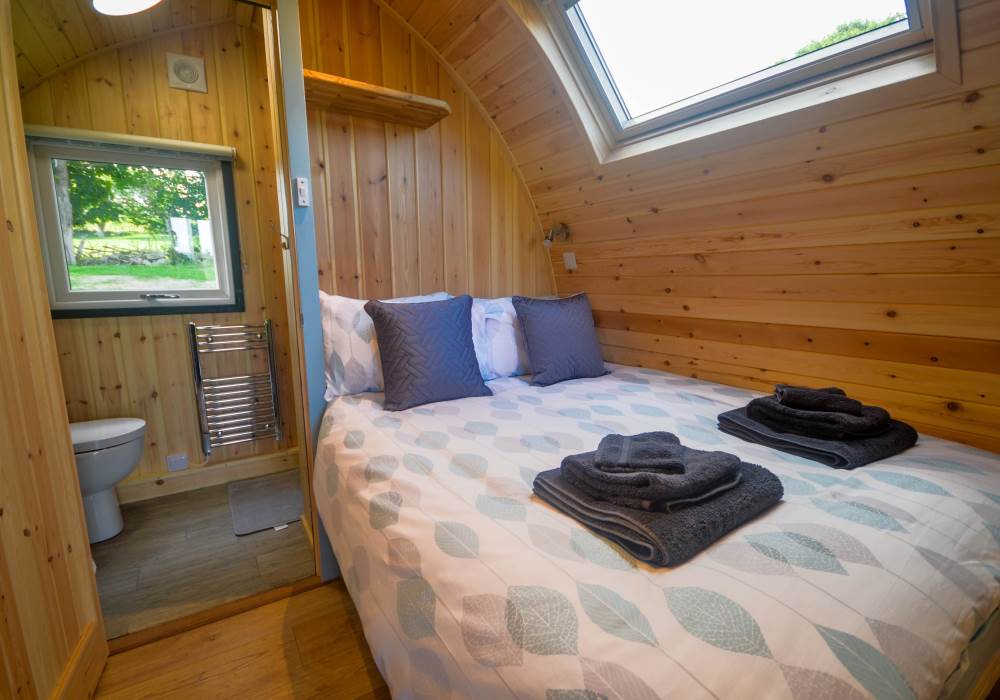 Our Glamping Pods offer guests a cosy, comfortable glamping experience where you can enjoy the feeling of being close to the wilderness, whilst also enjoying your home comforts. These pods are warm and cosy inside and sleep up to two people.