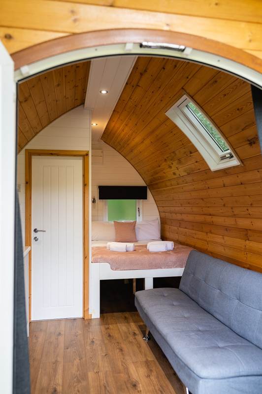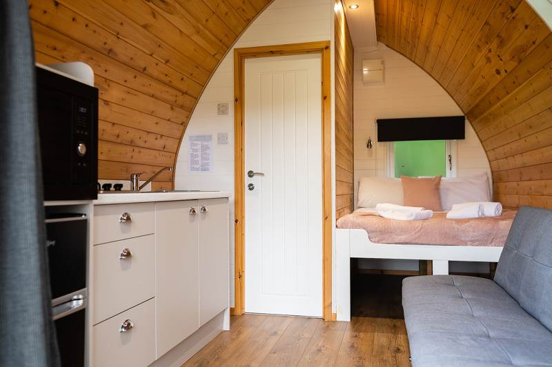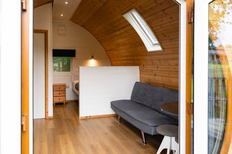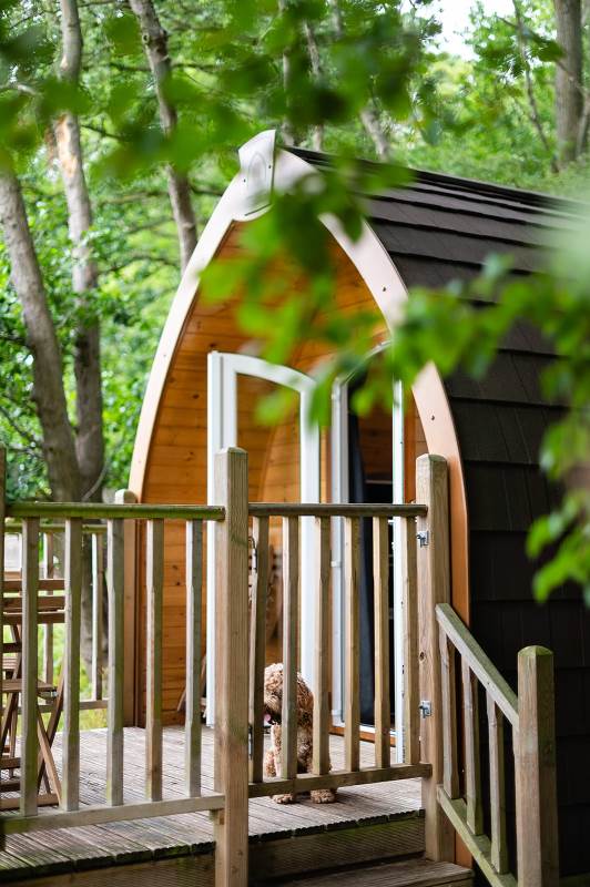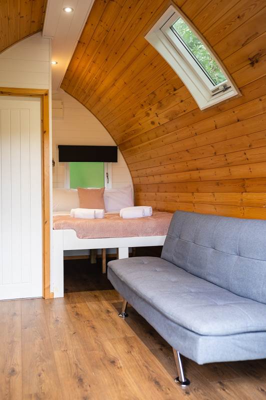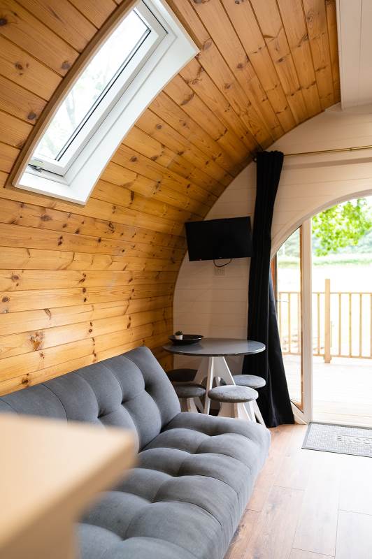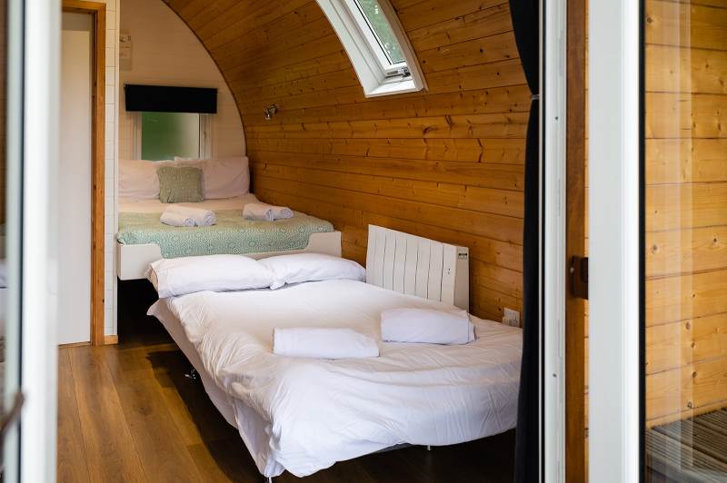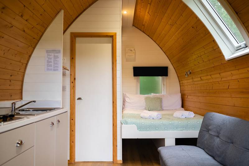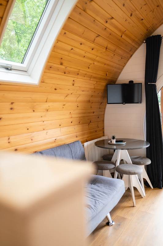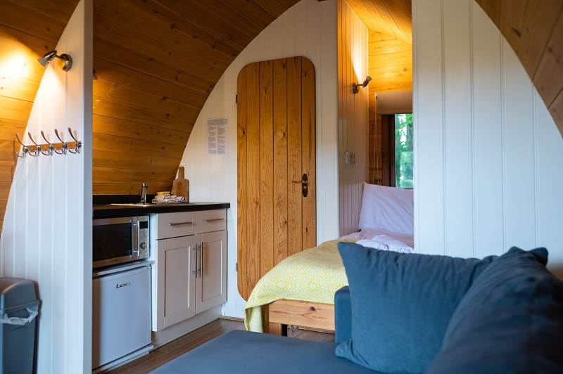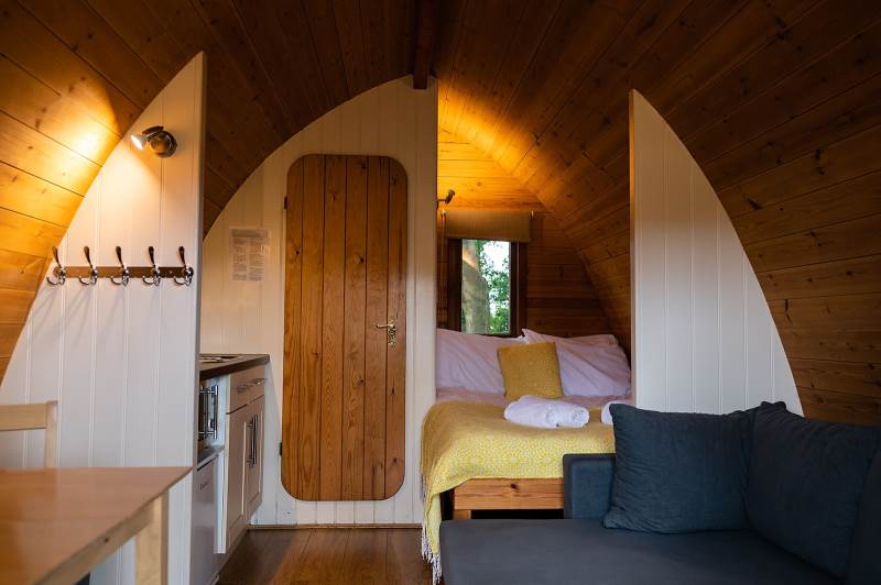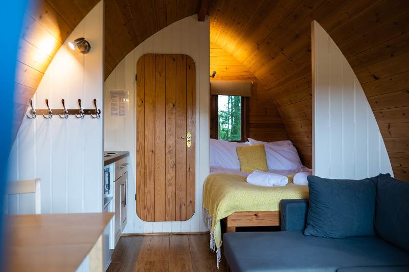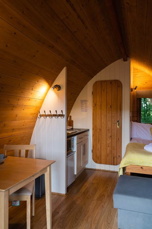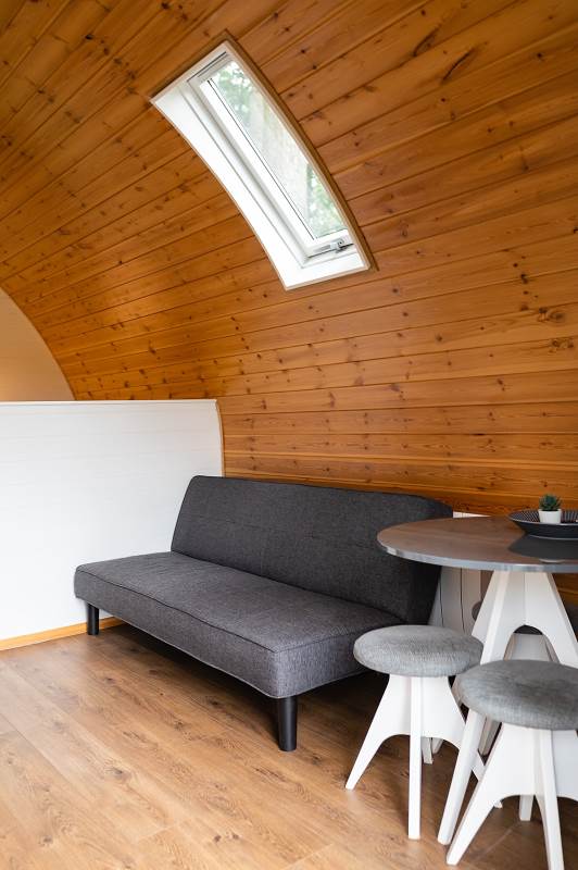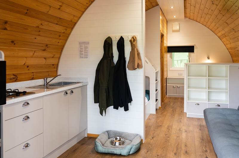 A cosy, compact space for relaxing break for you and your dog. This pod is for two adults.