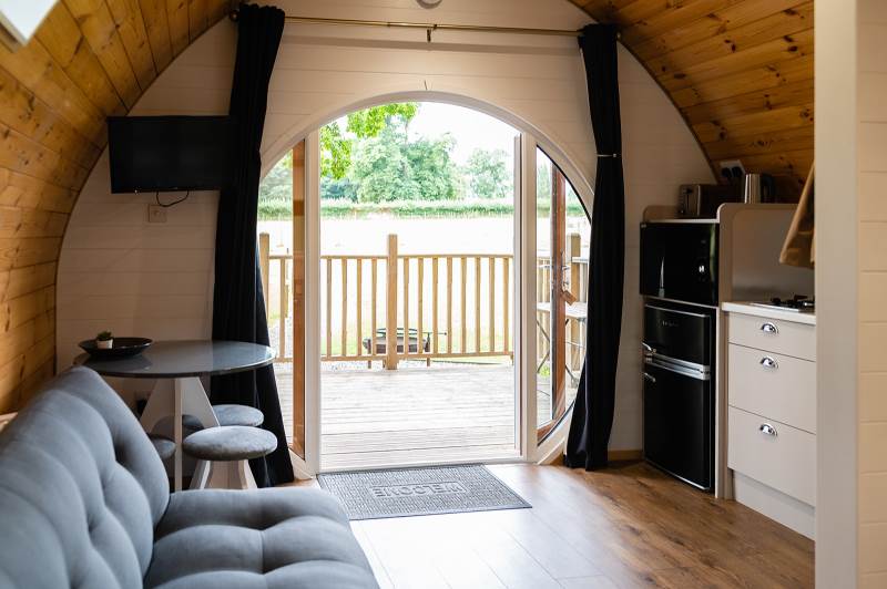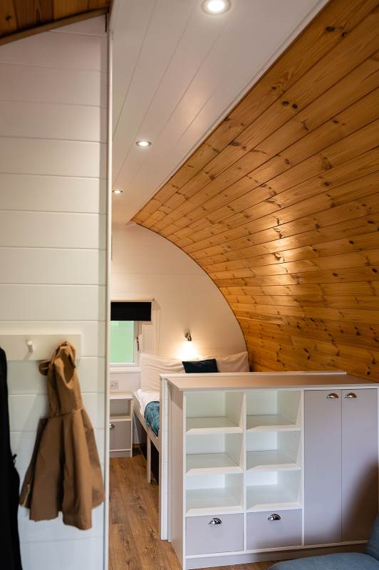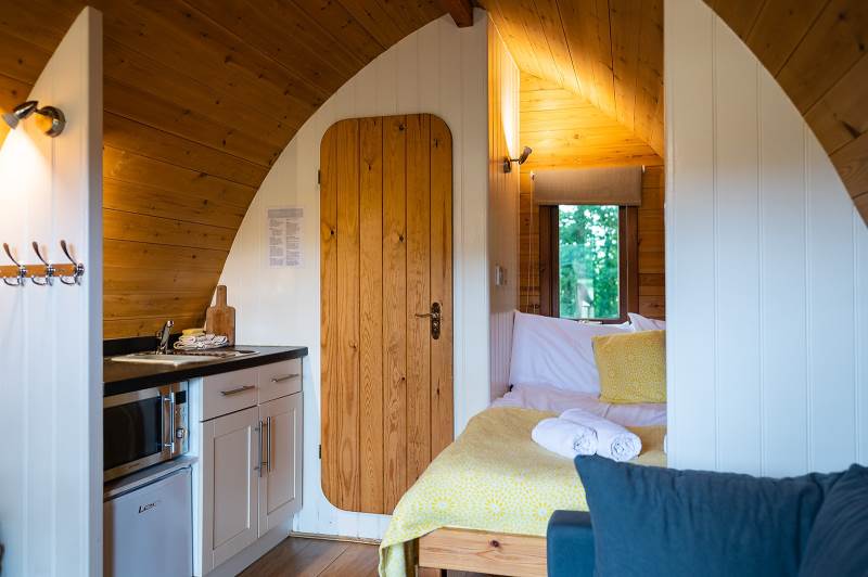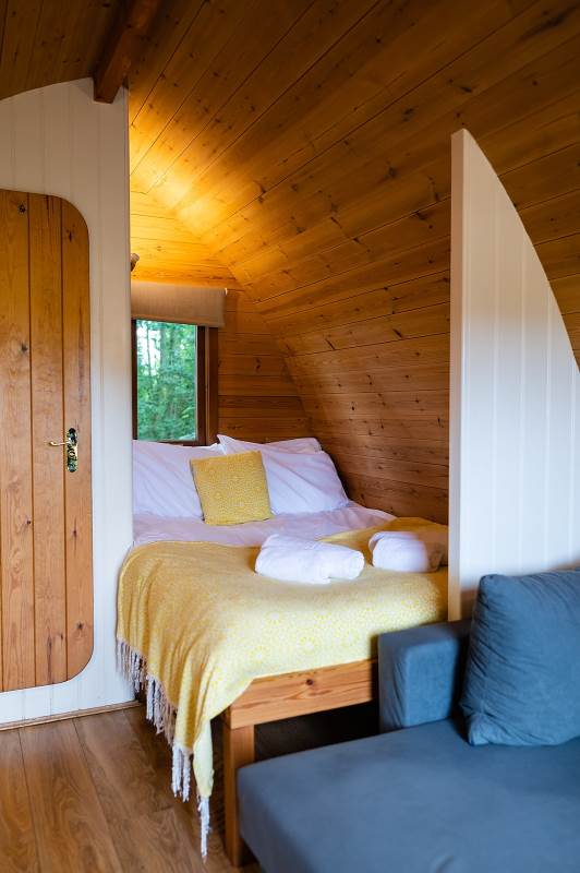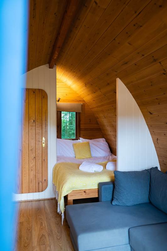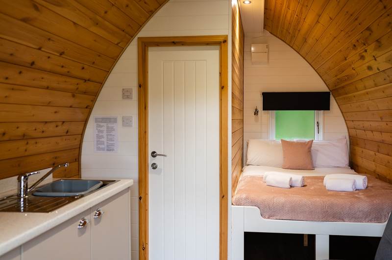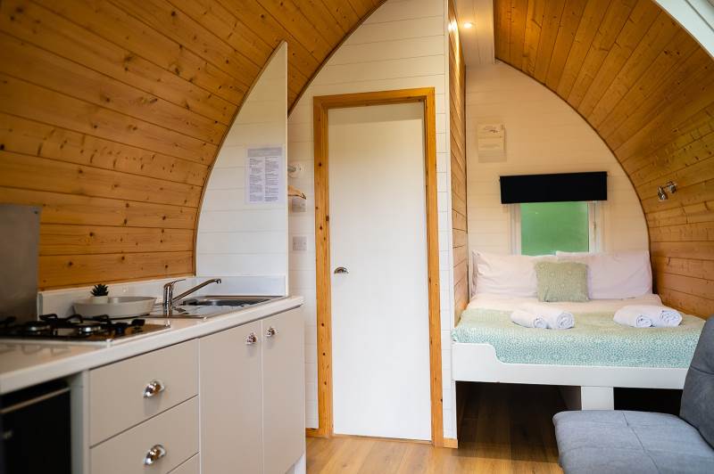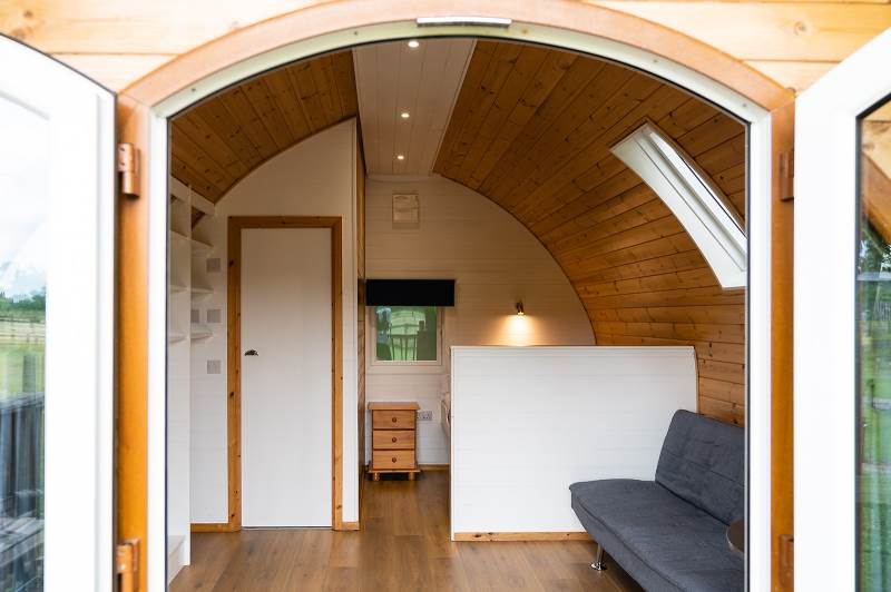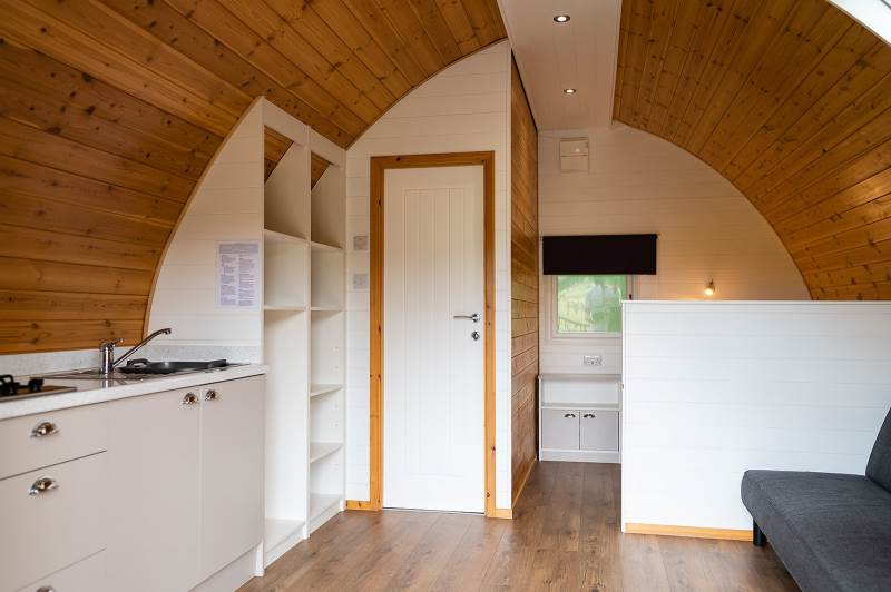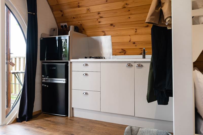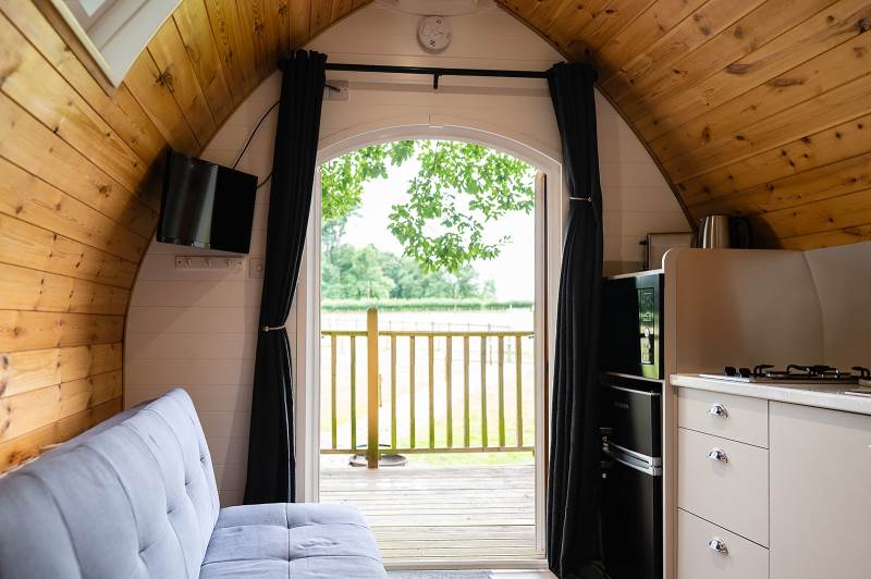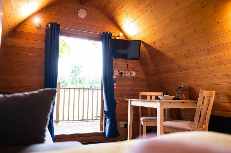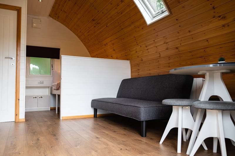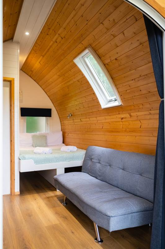 A cosy, compact space for relaxing break for you and your dog. This pod is for two adults.