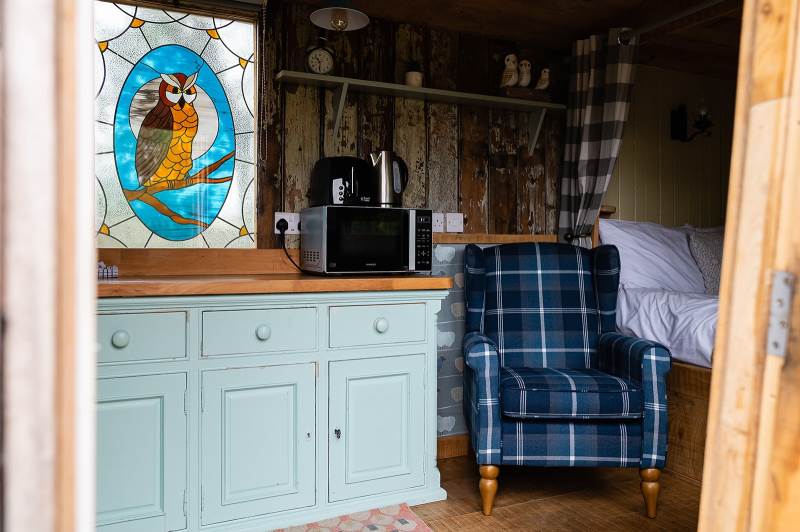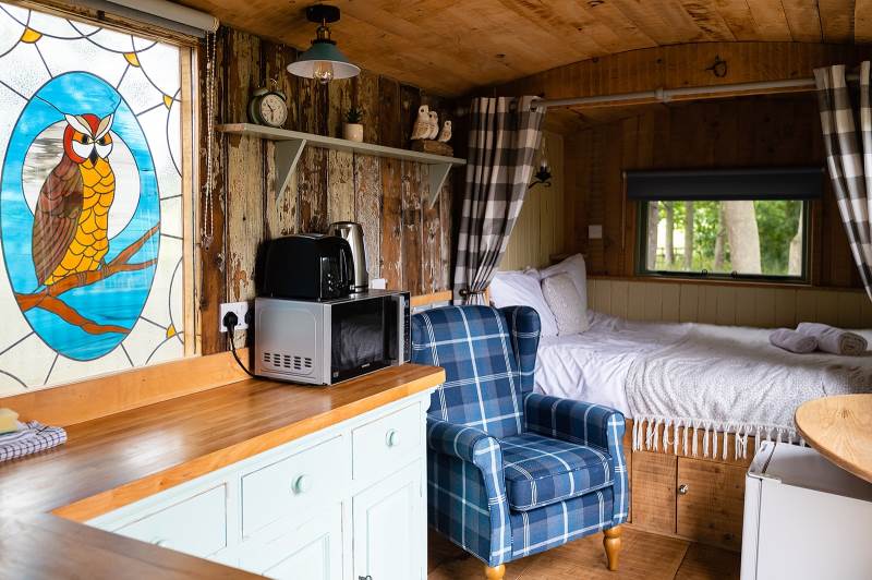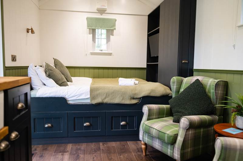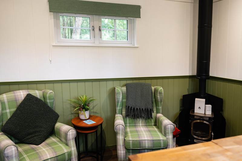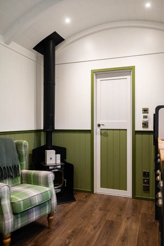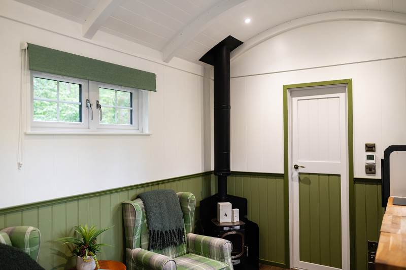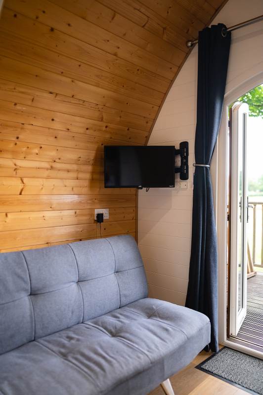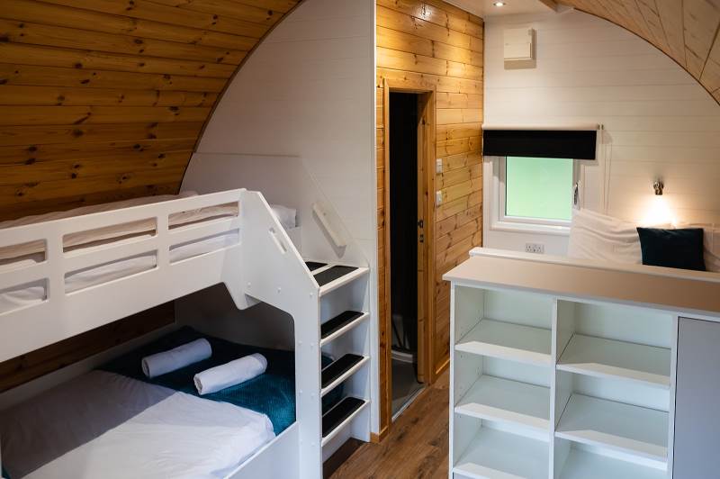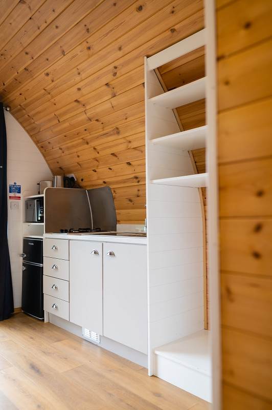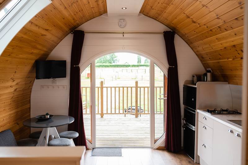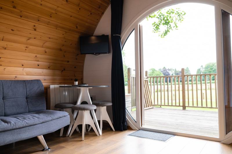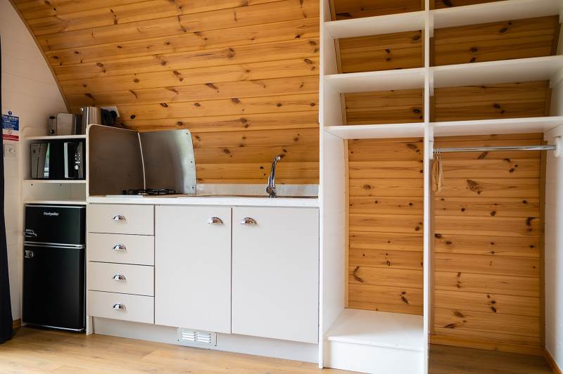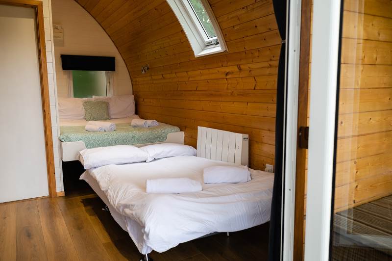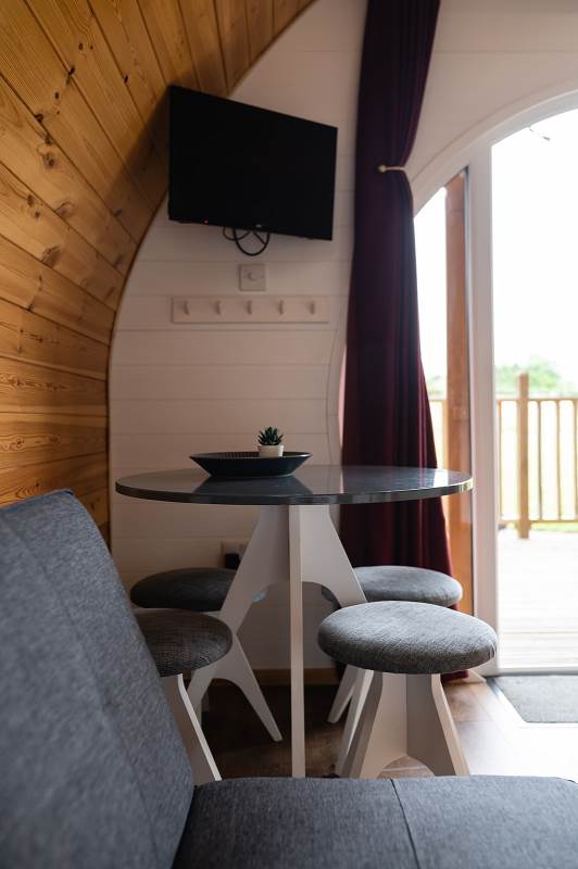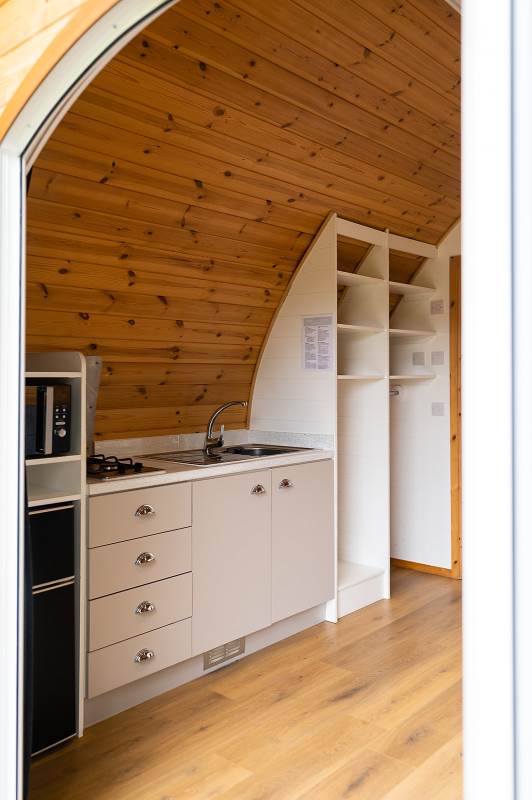 A cosy, compact space for relaxing break for you and your dog. This pod is for two adults.