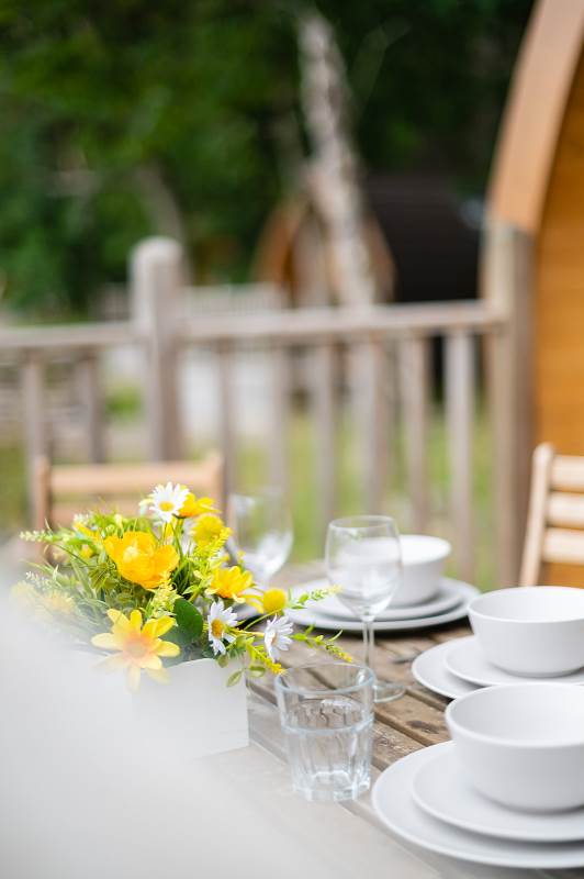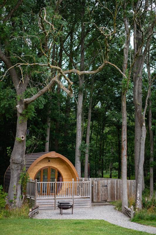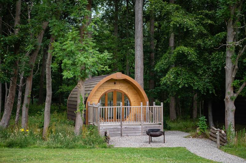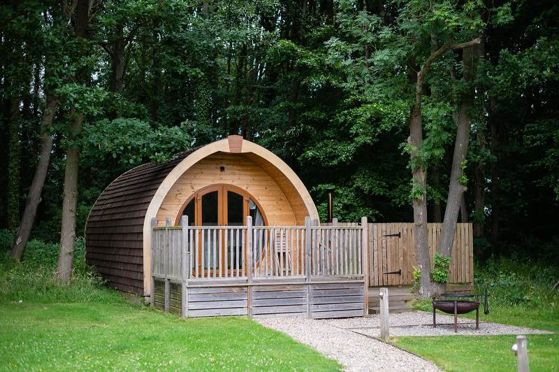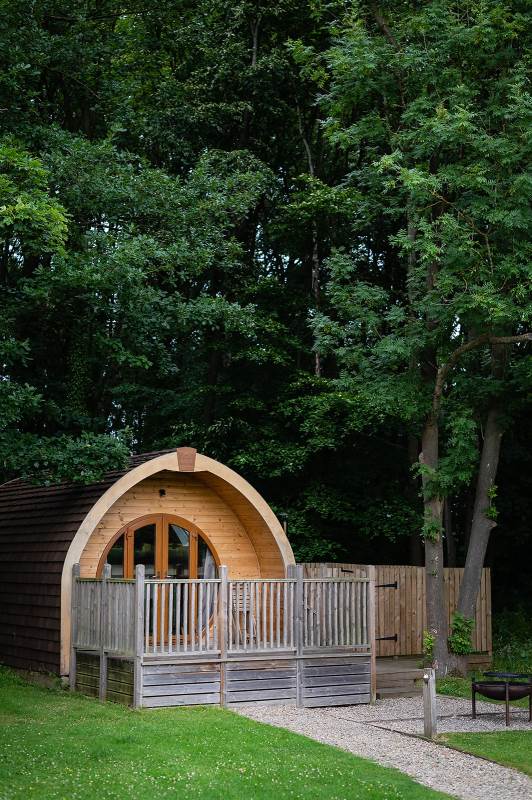 Our large pods are the perfect great escape. Suitable for two adults and two children. You also have a private hot tub for total luxury!