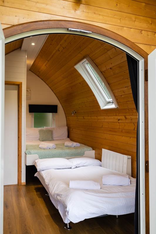 Our large pods are the perfect great escape. Suitable for two adults and two children, and the dog is invited too!