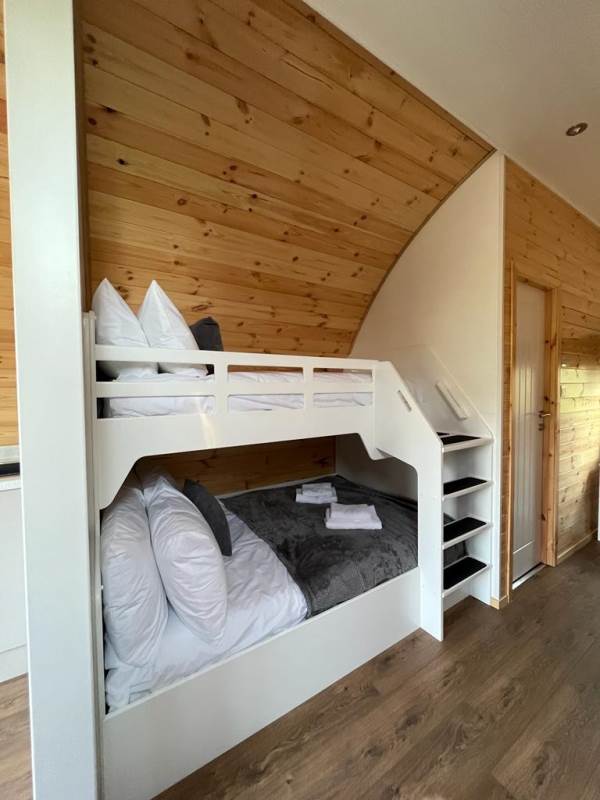Lovely pod and well equipped. Our party was two adults and two children (5 year olds). The pod was clean and well presented. Location was great and good communication about our stay. Would be good if there was a playground or set of swings or something on site.Thank you.