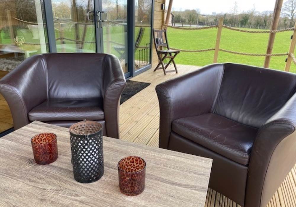 Outside the lodge there is a fire pit and outdoor seating ready for you to use. Cars are parked in a car park at the entrance, so the site is traffic free. Carts are provided as carriages for your luggage.
