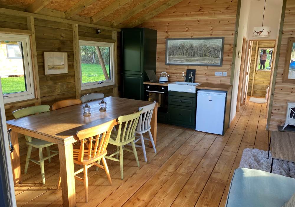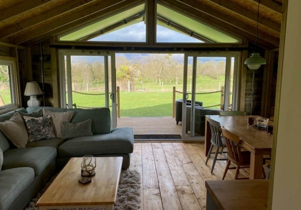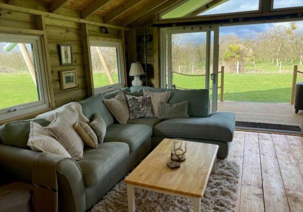Boasting a spacious open plan family living area where you can gather around the farmhouse table or relax on the comfortable sofas whilst chatting and creating those wonderful family moments. A modern kitchen with oven, hob and fridge gives the basics for any budding Master Chef. Full length patio doors open up to a raised decking area with seating for the whole family where you soak up the open views and enjoy the natural and relaxed rural setting.