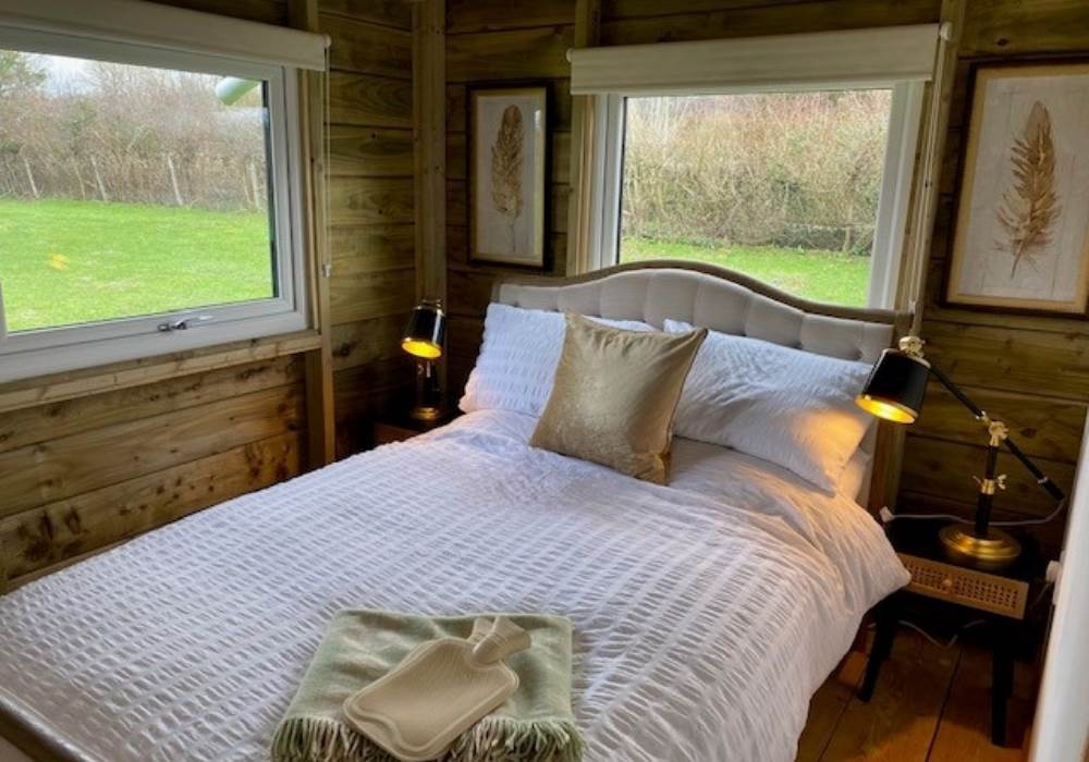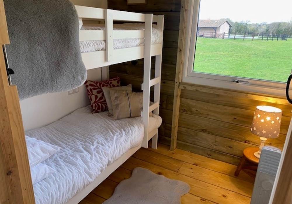 This lodge is ideal for the growing family offering two compact double bedrooms both with double beds. The third bedroom has bunk beds so can accommodate a single person or two teenager’s. Your own modern shower room with flushing loo and wash basin completes the luxury glamping experience which awaits you.