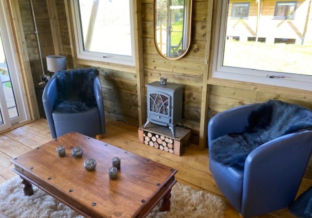 Outside the lodge there is a fire pit with outdoor seating ready for you to use. Cars are parked in a car park at the entrance, so the site is traffic free. Carts are provided as carriages for your luggage.