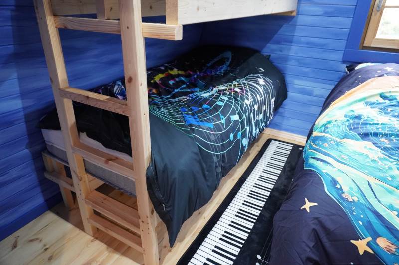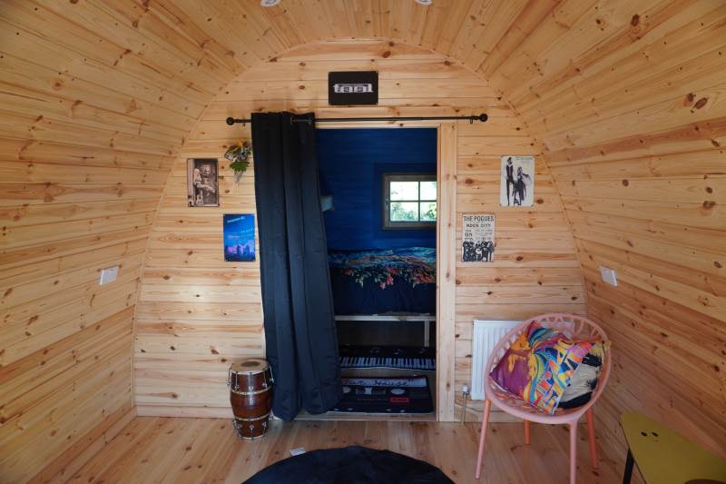 Tune into the rhythm of relaxation with our music-themed glamping pod! This uniquely decorated pod combines the charm of classic instruments with modern comfort.