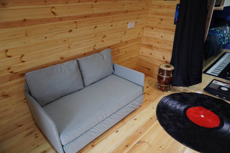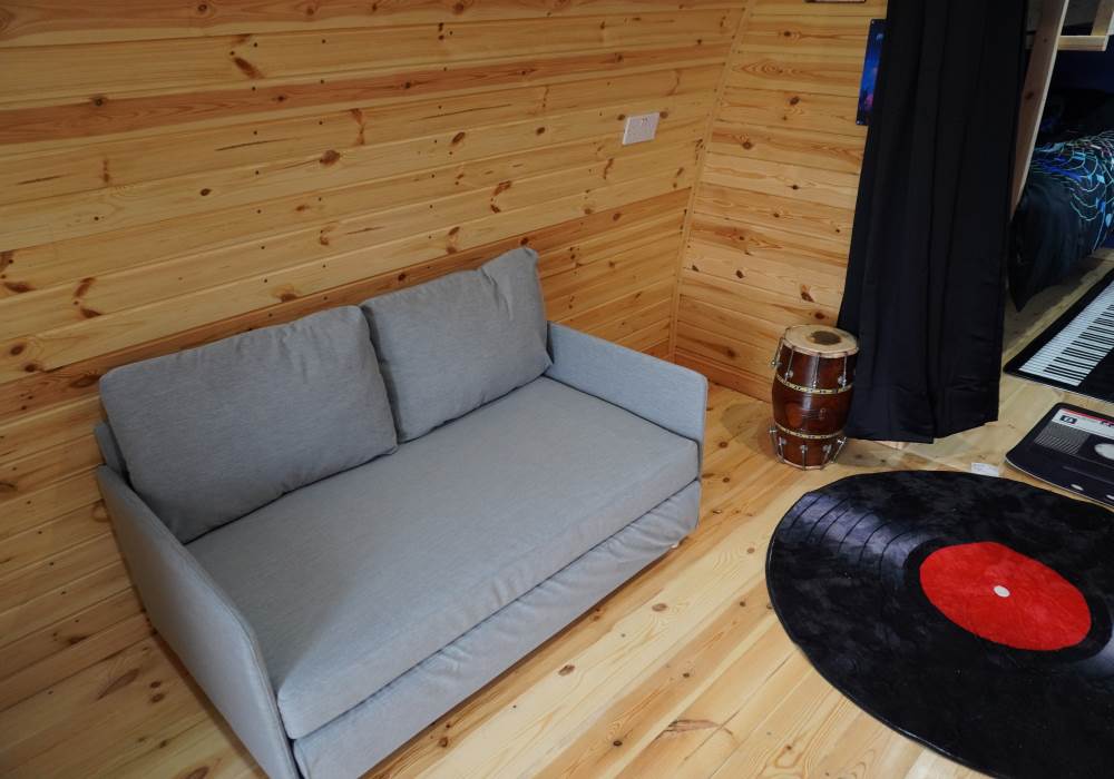 The pod’s design harmoniously integrates vintage instruments into the furniture, and offers reminders of great music form the present and the past, creating an atmosphere that celebrates the timeless beauty of music. Whether you’re a music lover or simply looking for a one-of-a-kind getaway, this pod offers a creative and harmonious escape, where every detail strikes the perfect chord!