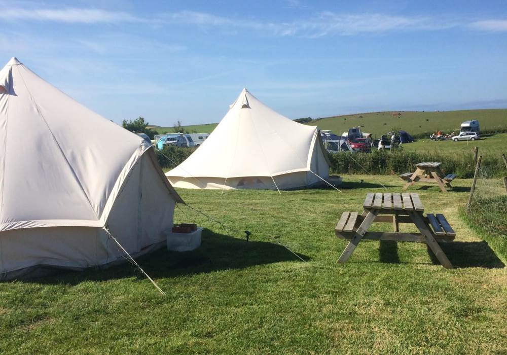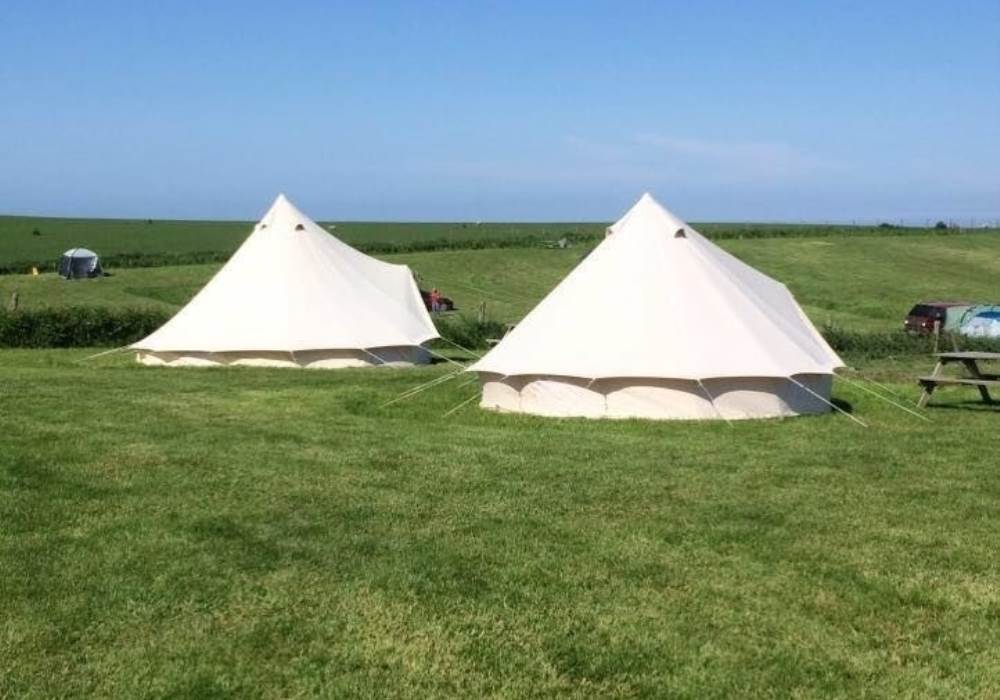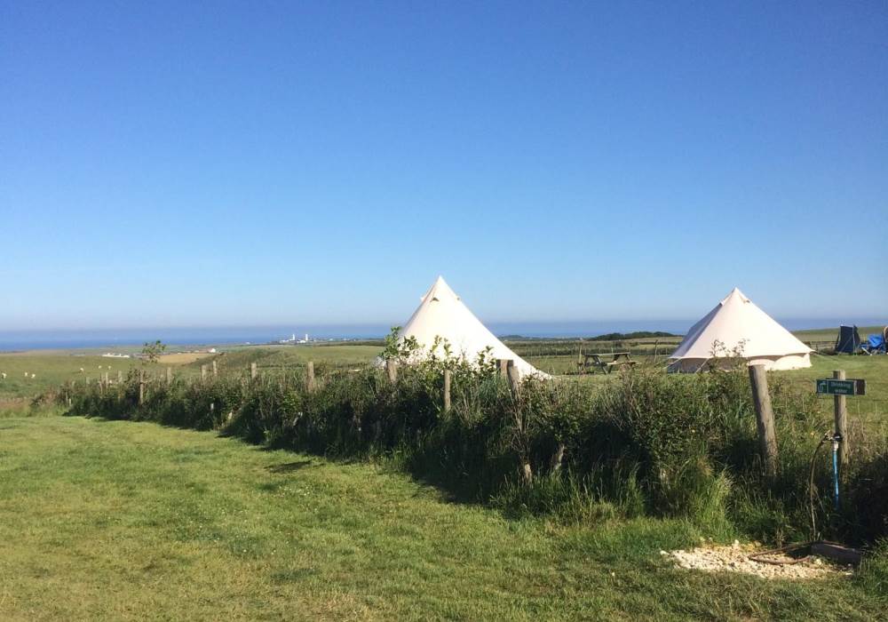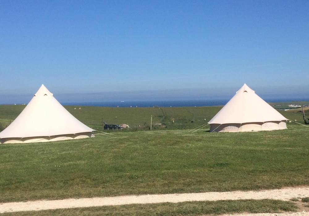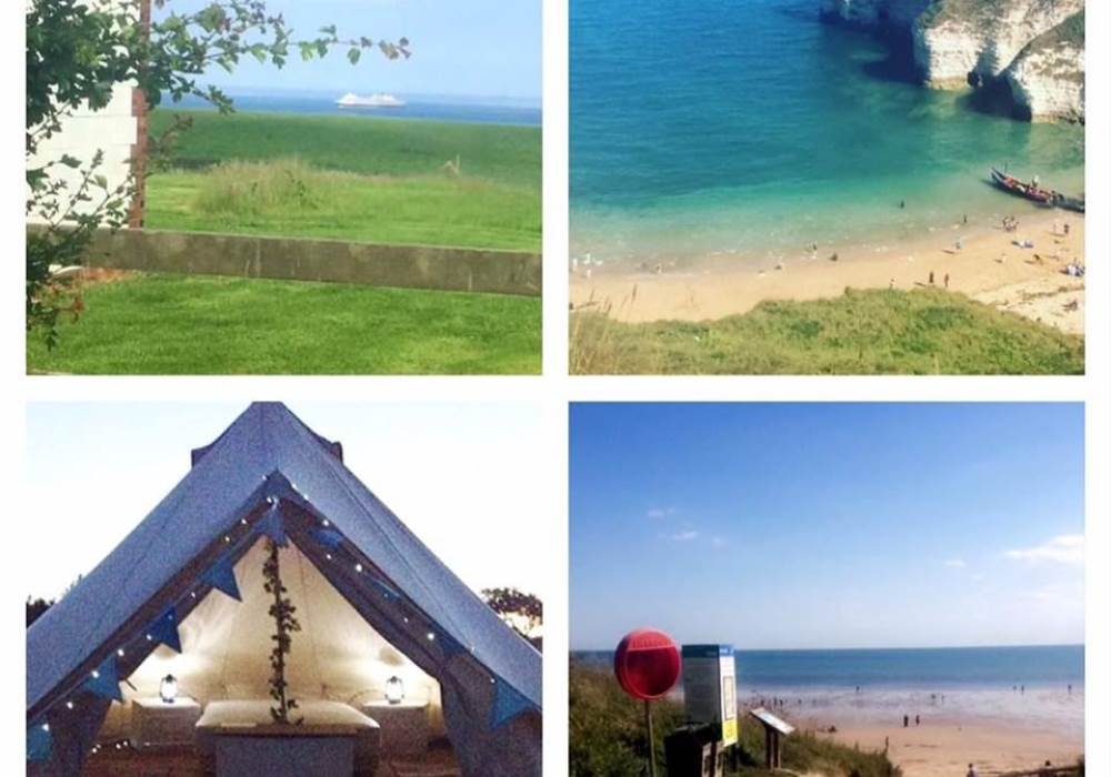 Our beautiful 5m Glamping bell tents are in an amazing location. We are based on a small, peaceful caravan park at Flamborough with stunning sea views and exclusive, direct access to the dramatic white chalk cliffs, which are a short 5 minute walk, where you will find many different sea birds! We are very close to several award winning beaches and a short drive to the village, where you will find many pubs serving excellent food. Our location is perfect for romance, peace, and adventure!