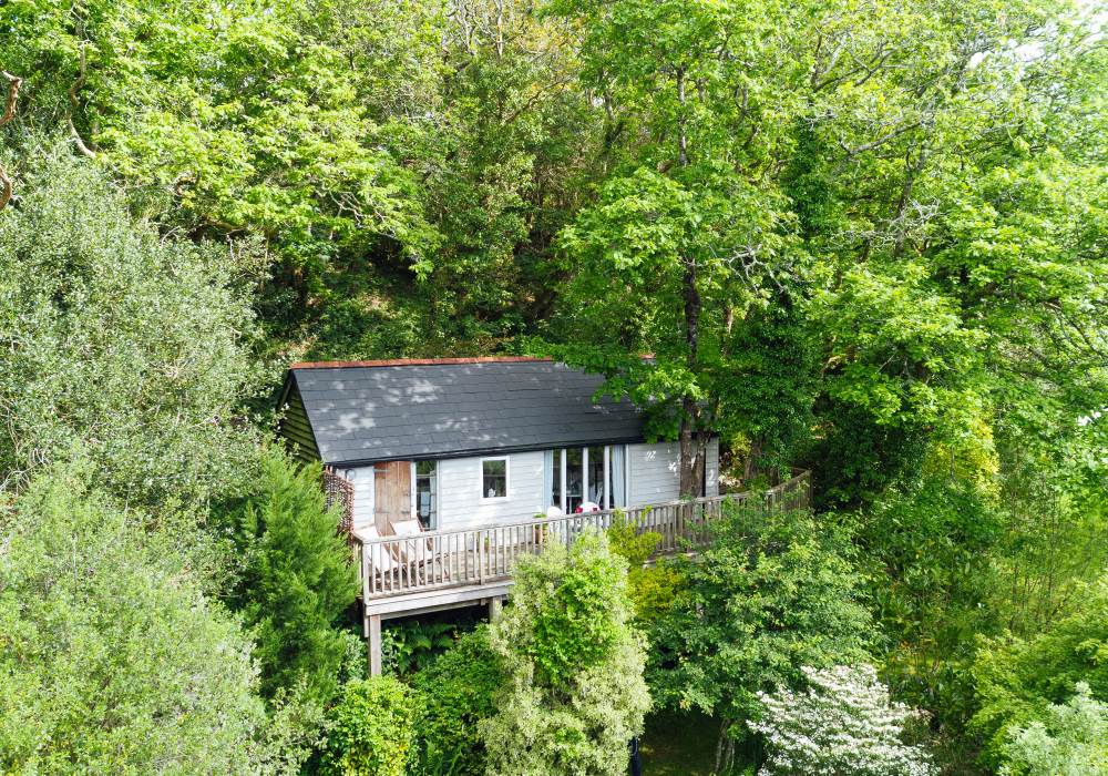 Set in an ancient oak wood the cabin is a cosy retreat for two overlooking a lush tropical garden and stream. The cabin is bright and spacious with a king size bed and bespoke kitchen.