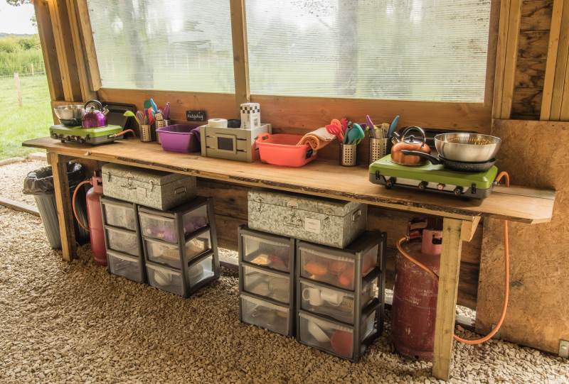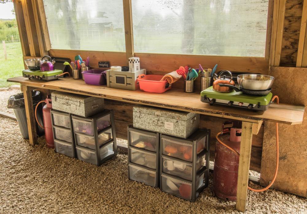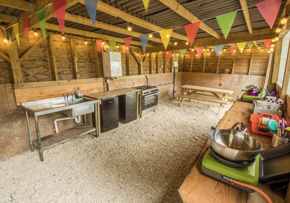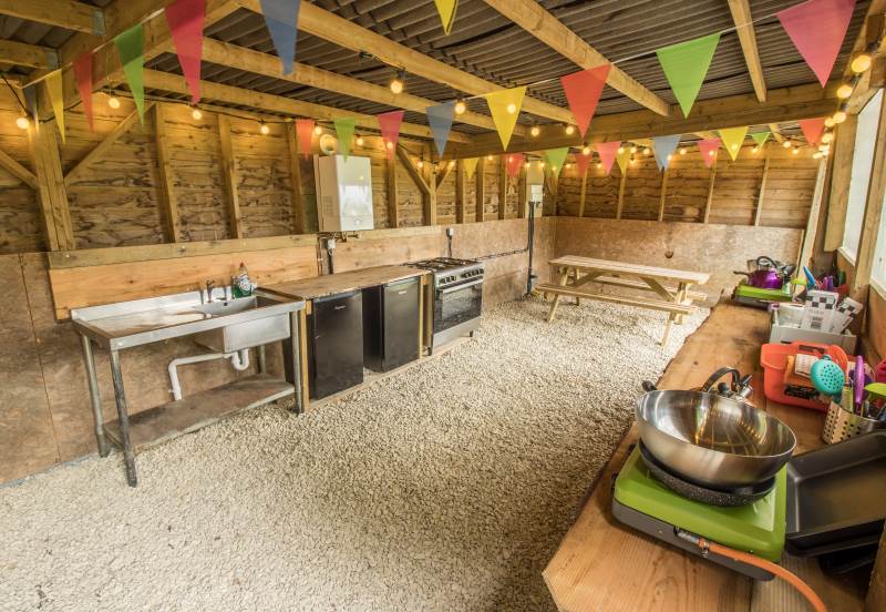 In the kitchen area you get your own work station complete with plates, cups, pots, pans cutlery etc, camping stove, fridge, storage box and picnic table, however there is a conventional communal range cooker and barbeque if the camping stoves do not take your fancy.
